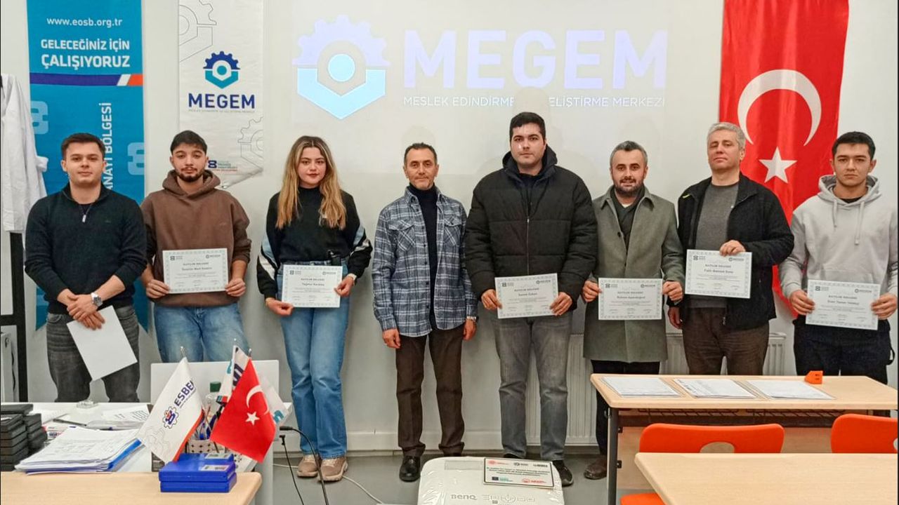 Mesleki Edindirme ve Geliştirme Merkezi’nde (MEGEM A.Ş.) 47. dönem mezuniyet heyecanı yaşandı. Eskişehir Organize Sanayi Bölgesi (EOSB) ile MEGEM A.Ş. iş birliğinde yürütülen Meslek Eğitim Kursları kapsamında, toplam 45 kursiyer mezun olarak sanayide iş hayatına adım attı. Dönem sonunda; CNC bölümünden 17, Kalite Kontrol bölümünden 9, Kaynak bölümünden 9 ve Makine Bakım ve Montaj bölümünden 10 kişi mezun oldu.