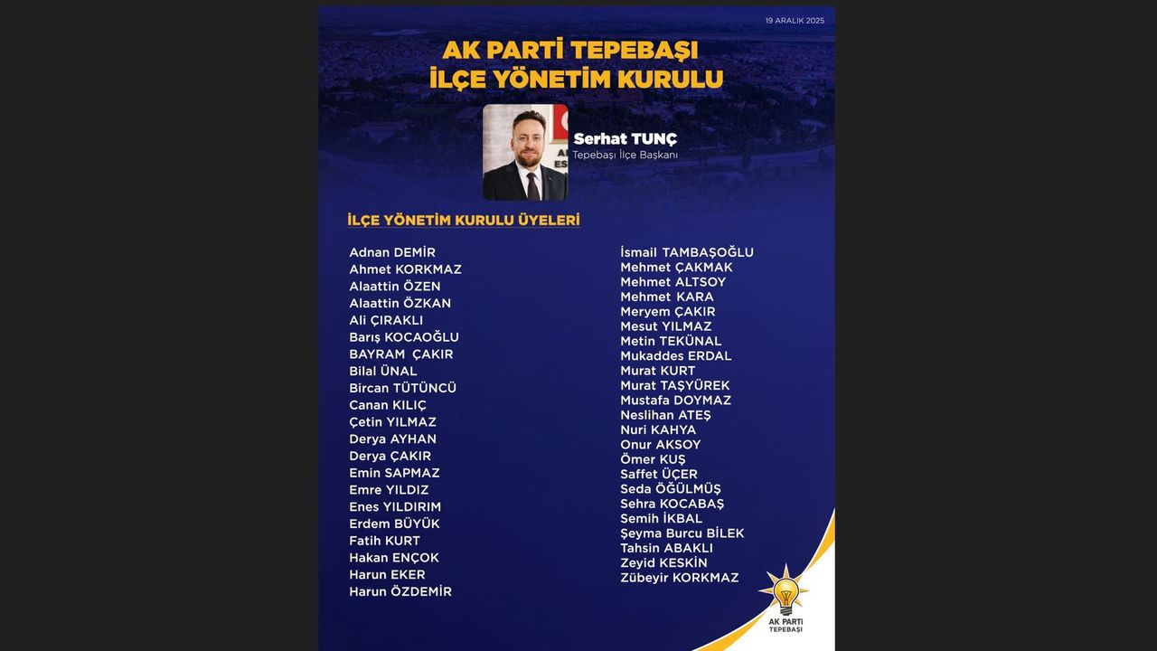 Yeni yönetim listesi hazırlanırken Tepebaşı’nın demografik yapısı, mahallelerin ihtiyaçları ve toplumsal beklentilerin ön planda tutulduğu belirtilirken, Tepebaşı İlçe Başkanı Serhat Tunç başkanlığındaki liste şu isimlerden oluştu: