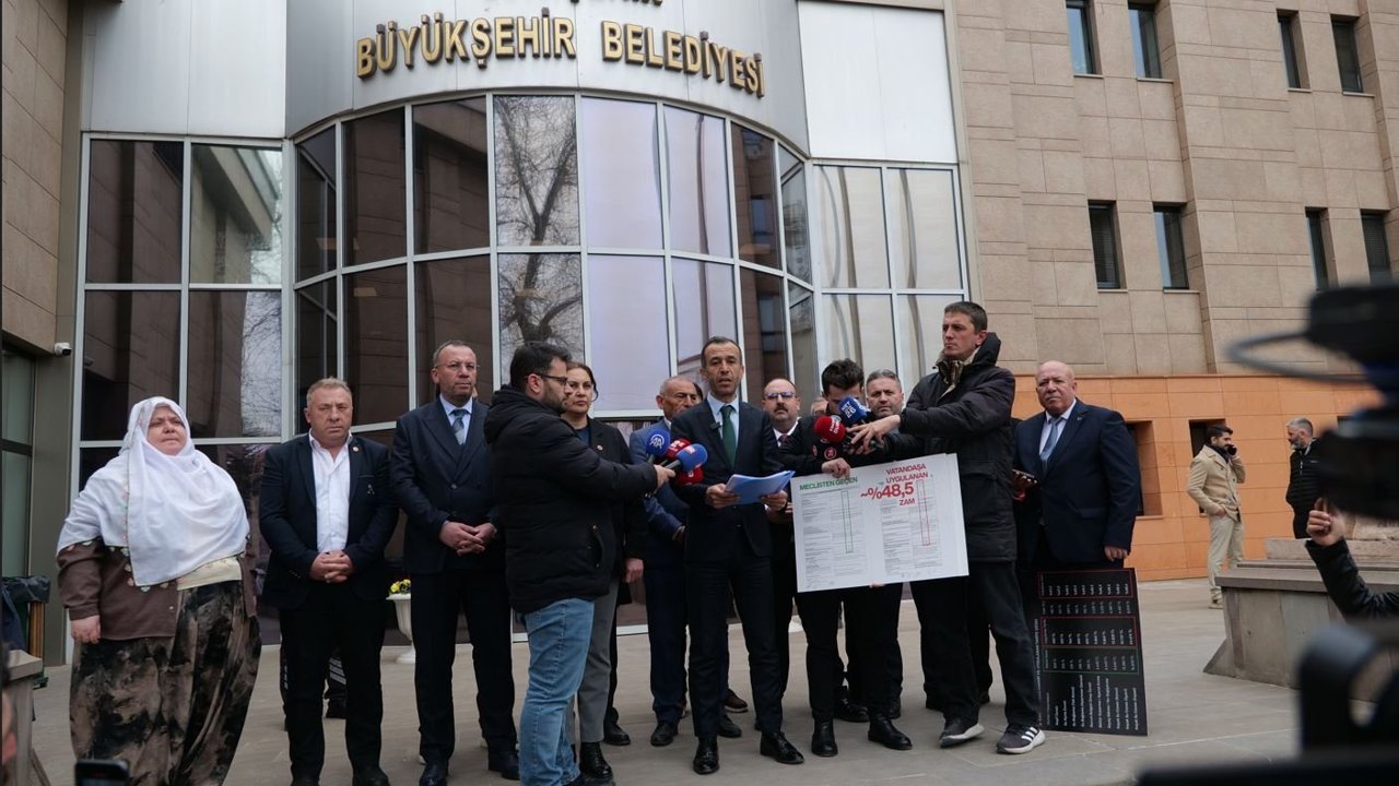 Meclis üyeleri Büyükşehir Belediye binası önünde toplanırken, açıklama Eskişehir Büyükşehir Belediyesi Meclisi AK Parti Grup Başkan Vekili Ahmet Dönmez tarafından yapıldı. ESKİ Genel Müdürlüğü Plan Bütçe Komisyonu'nda müzakere edilen ve imza altına alınan, komisyondan geldiği gibi mecliste onaylanan fiyat tarifeleri ile şu an yürürlükte olan tarifeler arasında vahim farklılıklar bulunduğuna dair kuvvetli şüphe ve somut bulgular oluşturduğunu belirten Dönmez, "Özellikle, ESKİ Genel Müdürlüğü bünyesinde 2026 yılı itibarıyla uygulanmaya başlanan "Hizmetler ve Teminatlar" ile "Yaptırımlar" tarifelerine ilişkin; Meclis ve komisyon aşamalarında kabul edilen içerikten farklı olarak, bazı kalemlerde yaklaşık yüzde 48,5 oranında fahiş bir artış yapıldı, bu usulsüz rakamların web sitesine girilerek vatandaşa yansıtıldı. Söz konusu tarifelerin yer aldığı belge sayfalarının, meclis iradesi dışında sonradan değişikliğe uğramış olabileceğine dair güçlü emareler bulundu. Resmi evrak taleplerimize ancak 2. günde cevap verilmesi ve paylaşılan belgelerde görülen maddi hatalar, evrakların aslına uygun olmayan bir biçimde yeniden düzenlendiği kanaatini güçlendirmektedir. Bu şüphelerimizi destekleyen en somut husus ise Komisyon Kararı dosyasındaki dikkat çekici tutarsızlıklardır. Karar metninin genelinde ve "Su ve Atıksu Tarifesi" gibi diğer sayfalarda tüm komisyon üyelerinin (8 kişi) tam imzası ve parafı bulunurken; fiyatların yüzde 48,5 oranında artırıldığı kritik sayfalarda paraf sayısının 5'e düşmesi ve imza düzeninin bozulmuş olması, bu sayfaların "sonradan ihdas edildiği" yönünde açık bir emaredir" dedi.