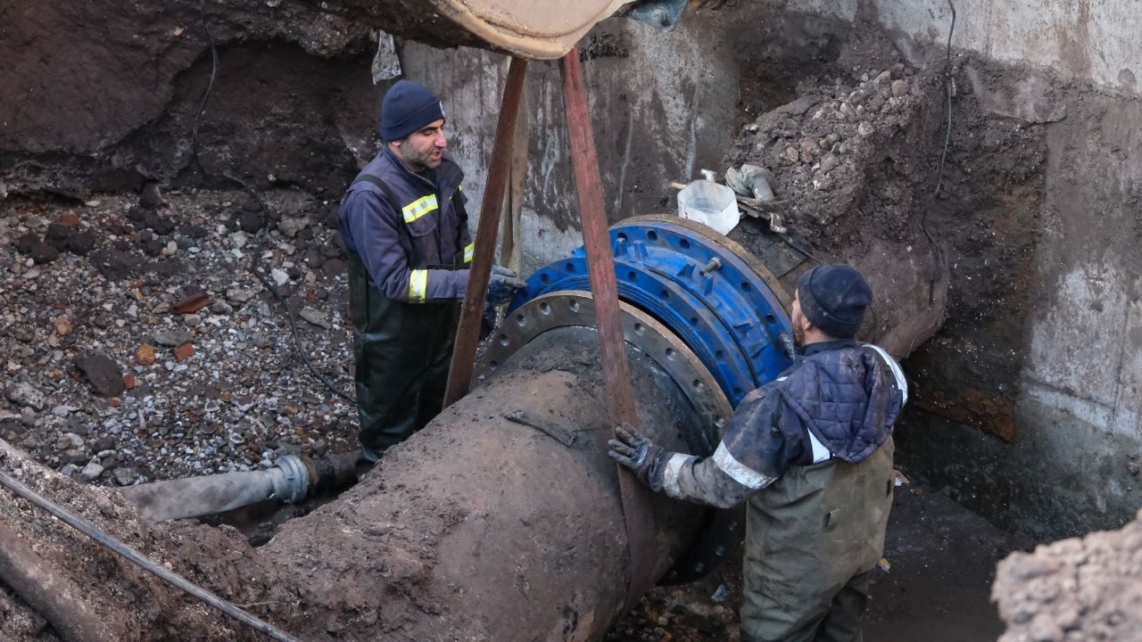 Su kesintisi yaşanan mahalleleri besleyen D4 diye adlandırılan depo sabah saatlerine kadar sorun yaşanmaması için seviyesi yüksekte tutulmuş, çalışmanın uzamasıyla birlikte sabah saatlerinden itibaren su kesintisi ve basınç düşüklüğü yaşanmaya başlamıştır. Depo ile terfi merkezi arasında bulunan 800 mm çelik basma hattındaki su tahliyesi merkez depoya aktarıldıktan sonra gece yarısı itibariyle tüm ekiplerimizle çelik boruya müdahaleye başlanmıştır. Müdahale sırasında çelik boru kesimi, ara parçaların hazırlanması, montaj ve kaynak işlemleri tamamlandıktan sonra borunun sızdırmazlık testi yapılmıştır. Sonrasında kontrollü olarak depoya su basılması gerçekleştirilmiş olup şebeke hatlarına su verilmiştir. Suyun depoya dökülerek hatta ulaşması mahallelerimizin yerleşim kotlarına göre zaman alabilecektir. Elimizde olmayan nedenlerden dolayı yaşanılan su kesintisinden ötürü vatandaşlarımızın gösterdiği sabır ve anlayışa teşekkür ederiz.