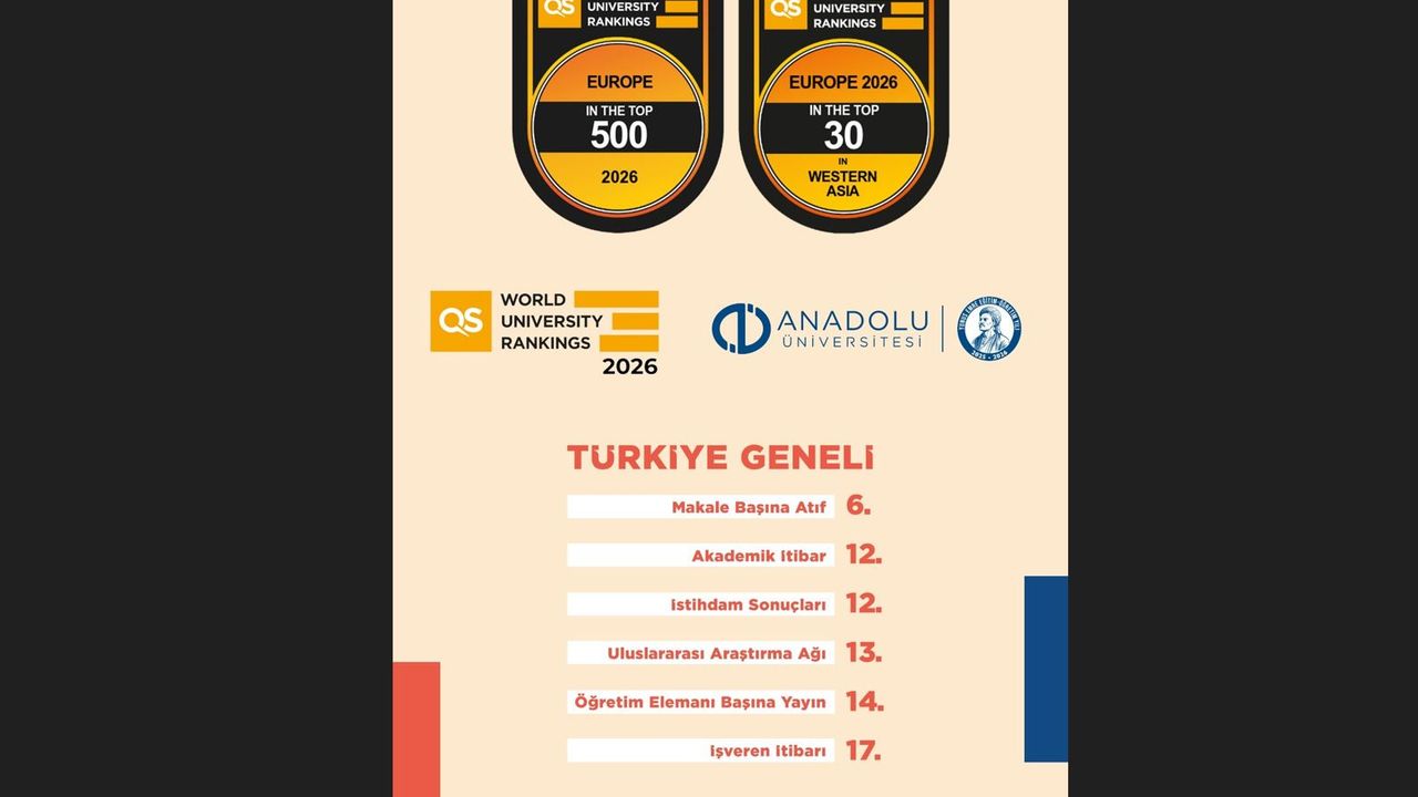 QS tarafından Türkiye’de değerlendirilen 107 üniversite arasında yapılan sıralamalarda Anadolu Üniversitesi, birçok temel göstergede üst sıralarda yer aldı. Üniversitenin Türkiye genelindeki performansı şu şekilde sıralandı: