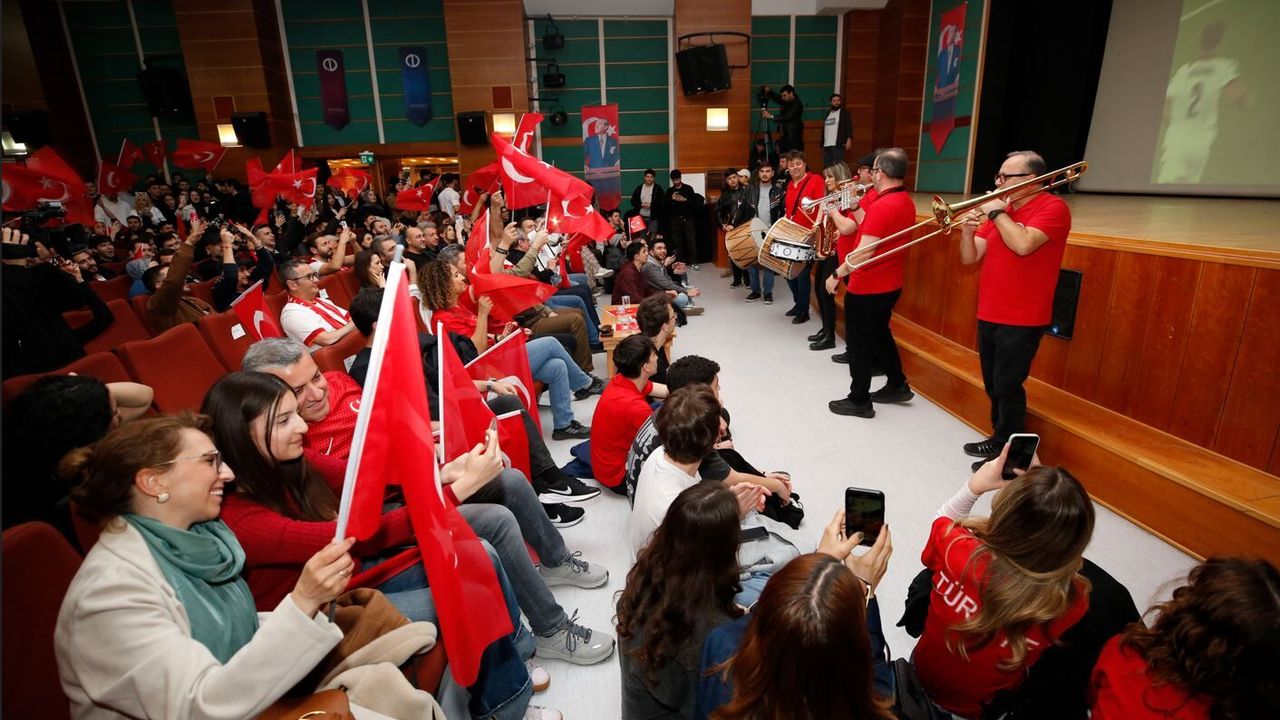 Sinema Anadolu Salonu’nda gerçekleştirilen maç gösterimine öğrenciler ve akademisyenler yoğun ilgi gösterdi. Karşılaşmayı izlemek isteyen katılımcılar salonu tamamen doldururken, oturacak yer kalmadı. Anadolu Üniversitesi Rektör Yardımcıları Prof. Dr. Yusuf Özkay, Prof. Dr. Erkan Erdemir ve Prof. Dr. Köksal Büyük de katılarak öğrencilerle birlikte milli heyecana ortak oldu. Maç boyunca süren coşku, Millilerin galibiyetiyle birlikte zirveye ulaştı.