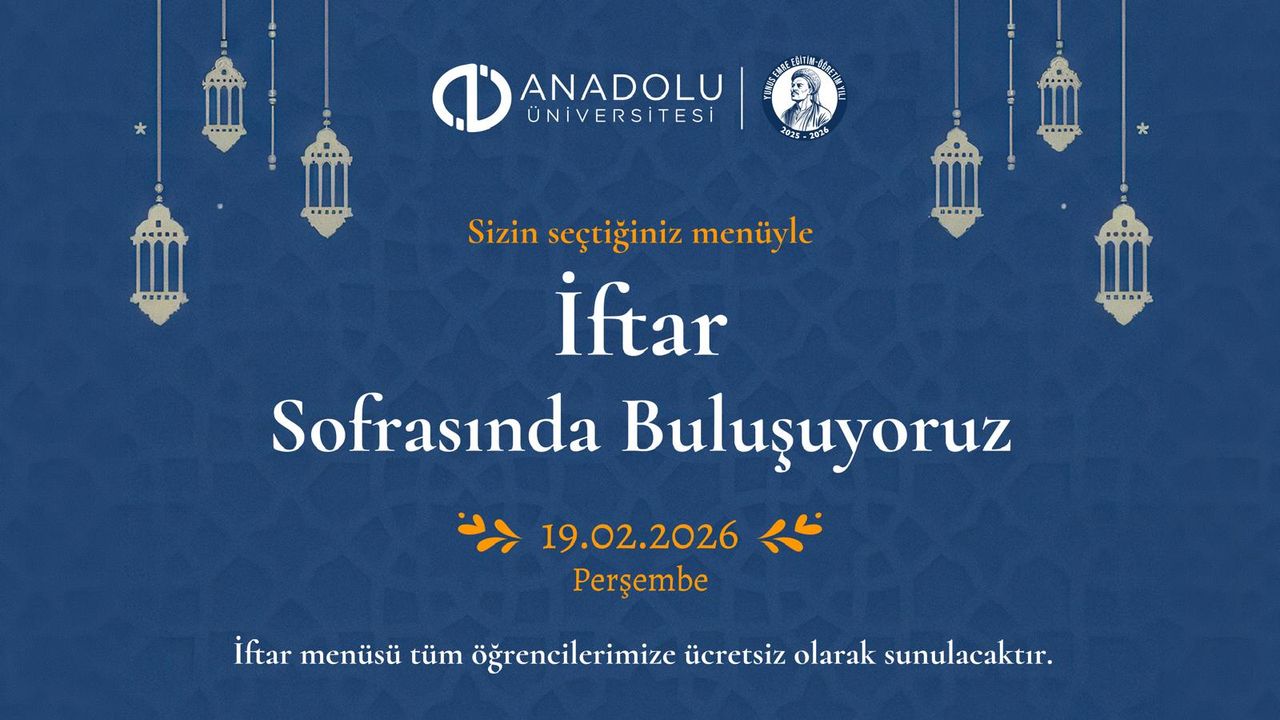 Anadolu Üniversitesi, Ramazan ayının bolluk ve bereketini paylaşmak; dayanışma ve kardeşlik duygularını pekiştirmek amacıyla tüm öğrencilerini bu anlamlı sofrada bir araya gelmeye davet ediyor.