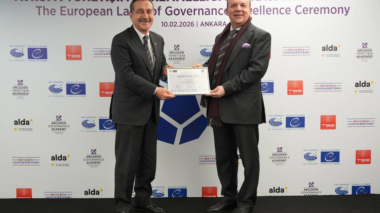 Avrupa Yönetişim Mükemmelliği Markası (ELoGE) 2025 Ödül Töreni, Türkiye Belediyeler Birliği’nin ev sahipliğinde Ankara’da düzenlendi. Törene; Tepebaşı Belediye Başkanı Dt. Ahmet Ataç, Etimesgut Belediye Başkanı Erdal Beşikçioğlu, Avrupa Konseyi Yerel ve Bölgesel Yönetimler Kongresi Başkan Yardımcısı Cecilia Dalman Eek, Argüden Yönetişim Akademisi Mütevelli Heyeti Başkanı Dr. Yılmaz Argüden, Türkiye Belediyeler Birliği Genel Sekreteri Suat Yıldız, Avrupa Konseyi İyi Yönetişim Uzmanlık Merkezi Başkan Yardımcısı Niall Sheerin, belediye başkanları, belediye bürokratları ve çok sayıda davetli katıldı.