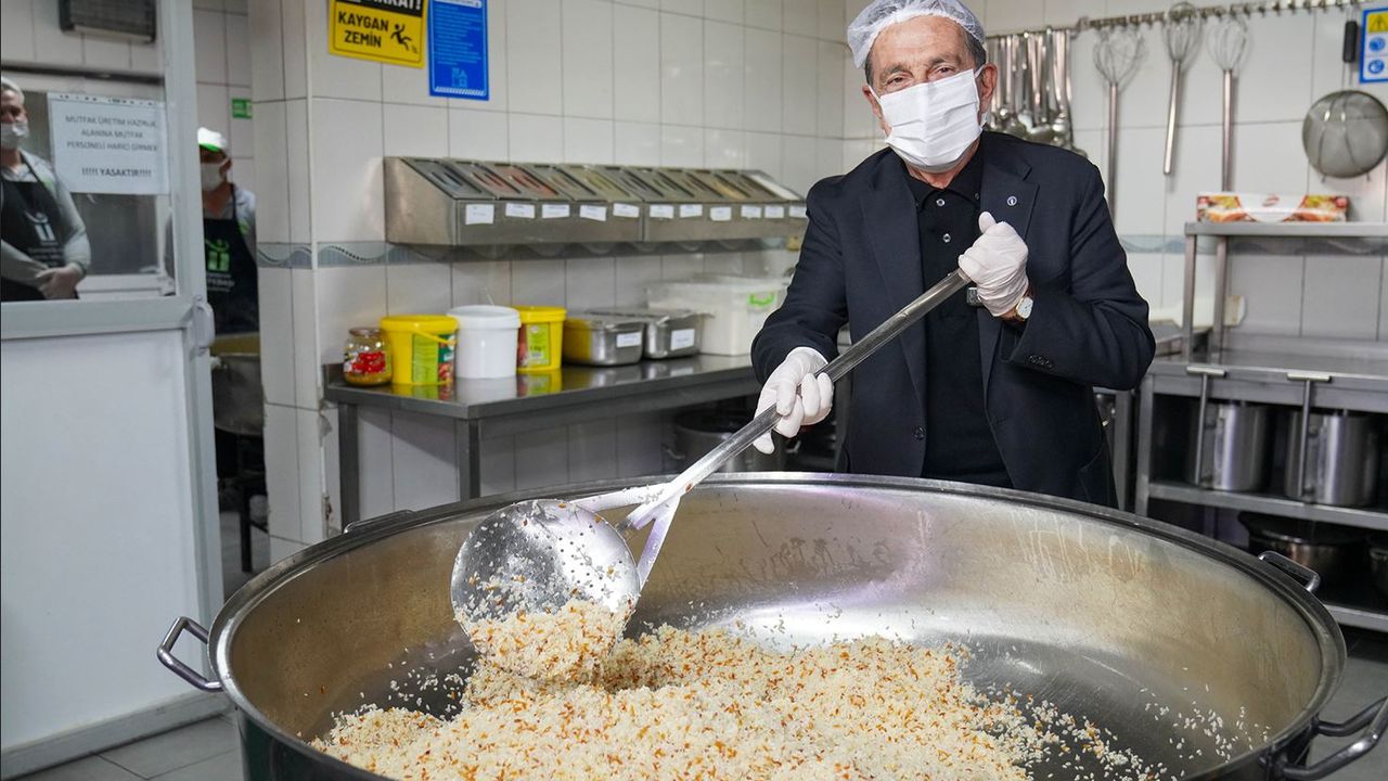 Başkan Ataç konuşmasının ardından yemek kazanlarının başına geçerek dayanışmanın bir parçası oldu.