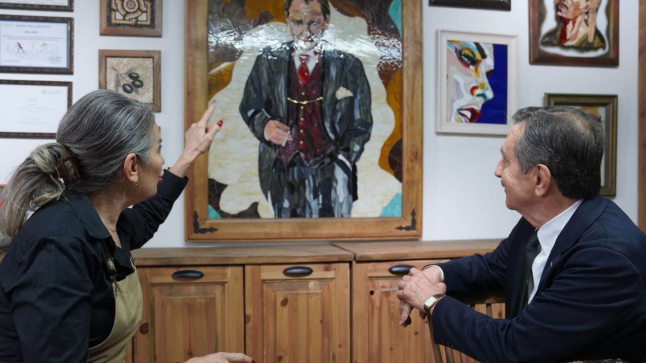 Tepebaşı Belediye Başkanı Ahmet Ataç, cam sanatçısı Gülşen Bayır’ı atölyesinde ziyaret etti. Ziyarette Gülşen Bayır tarafından hazırlanan eserleri inceleyen Başkan Ataç, üretim süreci hakkında da bilgi aldı.