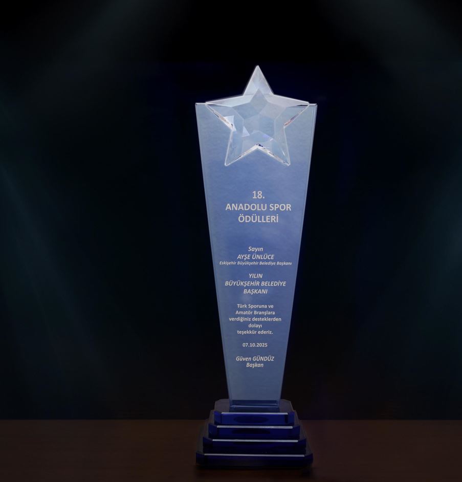 Spor alanında hayata geçirdiği projeler, tesis yatırımları ve sporun her yaş grubuna yayılması yönündeki çalışmaları nedeniyle Eskişehir Büyükşehir Belediye Başkanı Ayşe Ünlüce, “Yılın Büyükşehir Belediye Başkanı” ödülüne layık görüldü. Ödülü, Ünlüce adına Başkan Vekili Hasan Ünal, Kırıkkale Belediye Başkanı Ahmet Önal’dan aldı.