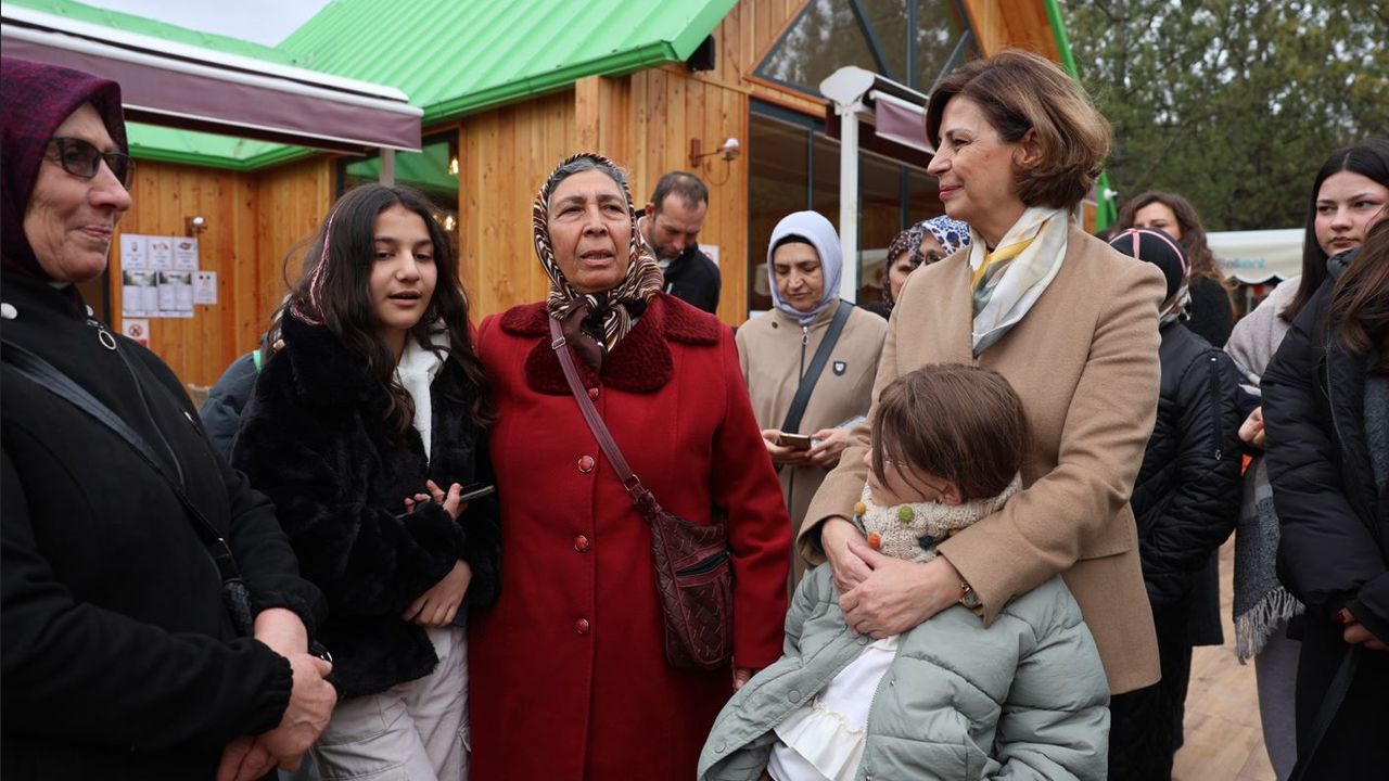 Büyükşehir Belediye Başkanı Ayşe Ünlüce, Mahmudiye ilçesi Yeni Mahalle’den gelen kadınlarla Aktif Yaşam Parkı’nda buluştu. Samimi bir ortamda gerçekleşen buluşmada Başkan Ünlüce, kadınlarla sohbet ederek görüş, öneri ve taleplerini dinledi. Programın ardından Mahmudiye’den gelen kadınlar Eskişehir’i gezme fırsatı buldu. Kadınlar, Büyükşehir Belediyesi’ne bağlı Masal Şatosu, Bilim Deney Merkezi ve Hayvanat Bahçesi başta olmak üzere kentin önemli tematik alanlarını ziyaret etti. Buluşmadan duydukları memnuniyeti belirten Mahmudiyeli kadınlar, çok mutlu olduklarını söyledi. Geziye katılan kız çocukları da, “Daha önce gezmediğimiz yerleri gezdik. Ayşe Başkanımız ile bir araya geldik. Bu gezi için çok teşekkür ediyoruz, Başkanımızı Mahmudiye halkı olarak çok seviyoruz. İnşallah uzun yıllar Başkanımız olur” diyerek memnuniyetlerini dile getirdi. Katılımcıların çok mutlu olduğunu ifade eden Yeni Mahalle Muhtarı Arif Mavili de gezi için mahalle halkı adına Başkan Ünlüce’ye teşekkür etti. Buluşmada konuşan Başkan Ayşe Ünlüce, kırsalda yaşayan vatandaşların kent merkezini ve belediye çalışmalarını yakından görmesinin önemine dikkat çekerek, “Son Mahmudiye ziyaretimde sizlerle bir hayal kurmuş, Eskişehir’de bir araya gelelim demiştik. Sizlerle buluşmak, kırsalımızda yaşayan vatandaşlarımızın kent merkezimizi ve çalışmalarımızı yerinde görmeleri bizim için çok kıymetli. Bizlerden talepkâr olun, muhtarlarınıza iletin. İç içe olalım, beraber olalım. Kadınların yüzlerinin güldüğü bir şehir istiyoruz. Sizin yüzü gülerse bizlerin de güler” ifadelerini kullandı.