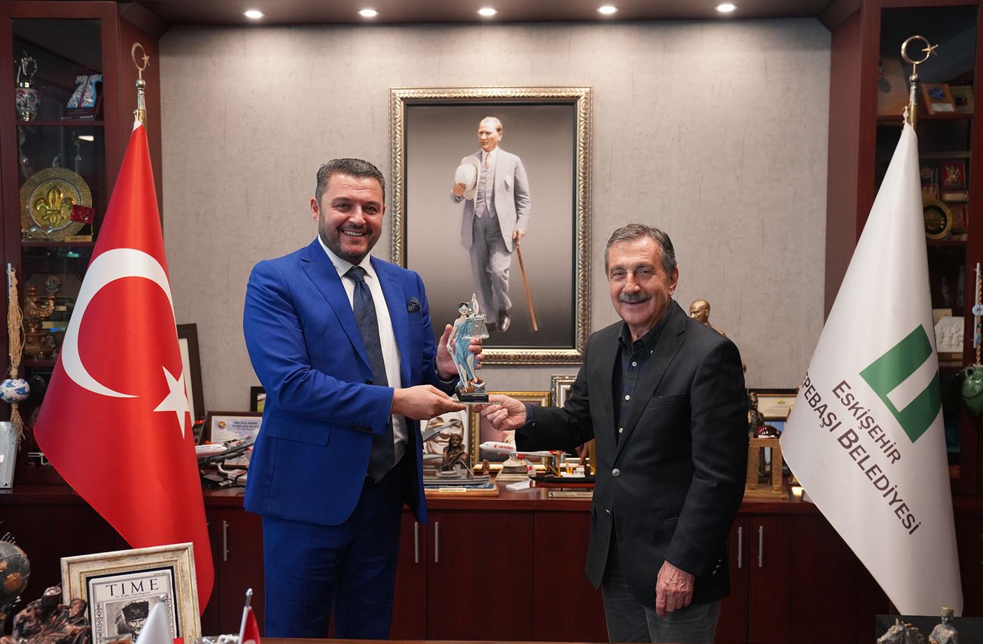 Tepebaşı Belediyesi’nin Kardeş Şehri Bilecik ile kardeşlik ilişkileri kurmak üzere ülkemize gelen Bulgaristan Rodopi Belediye Başkanı Pavel Mihaylov, Başkan Yardımcısı Vasıl Atanasov Petleshkov, Meclis Başkanı İvanka Petkova, Bulgar Türk İş Adamları Derneği (BULTİŞ) Başkanı Donka Engelova Koleva, Ustina Belediye Başkanı Renginar Mustafaova, Plovdiv Müslümanları Encümen Başkanı Ahmet Pehlivan ve ERİAD Plovdiv temsilcisi Murat Rahmiev, Tepebaşı Belediye Başkanı Dt. Ahmet Ataç’ı da makamında ziyaret etti.