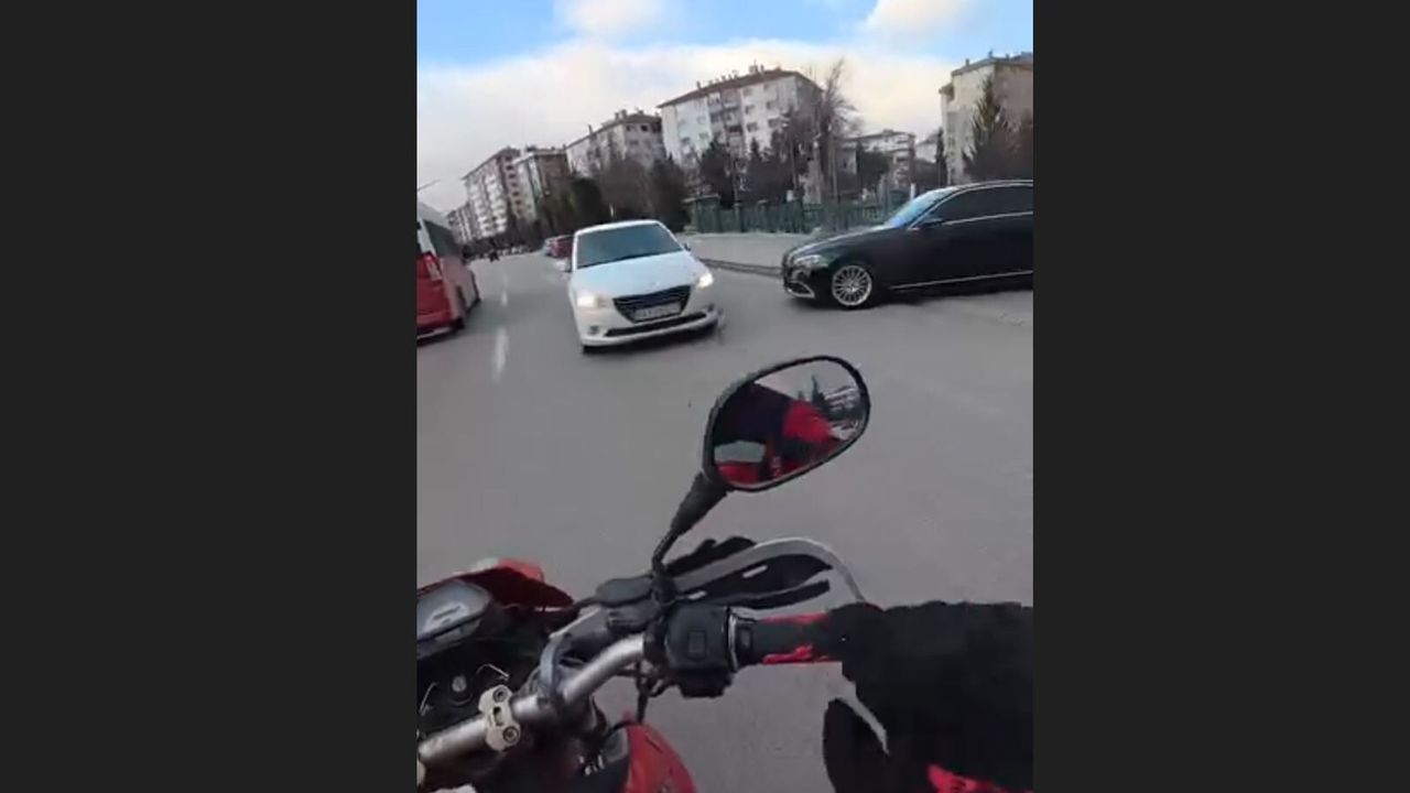 Olay, dün akşam saat 18.00 sıralarında Atatürk Bulvarı'nda meydana geldi. 06 CHA 675 plakalı otomobil, ters yönde seyir ederek trafiği tehlikeye attı. Kazaya davetiye çıkaran araç, o esnada tam karşısından gelen bir motosiklet sürücüsünün kask kamerasına yansıdı. Motosikletli, ters yönden üzerine doğru gelen otomobile korna çalarak tepki gösterdi.