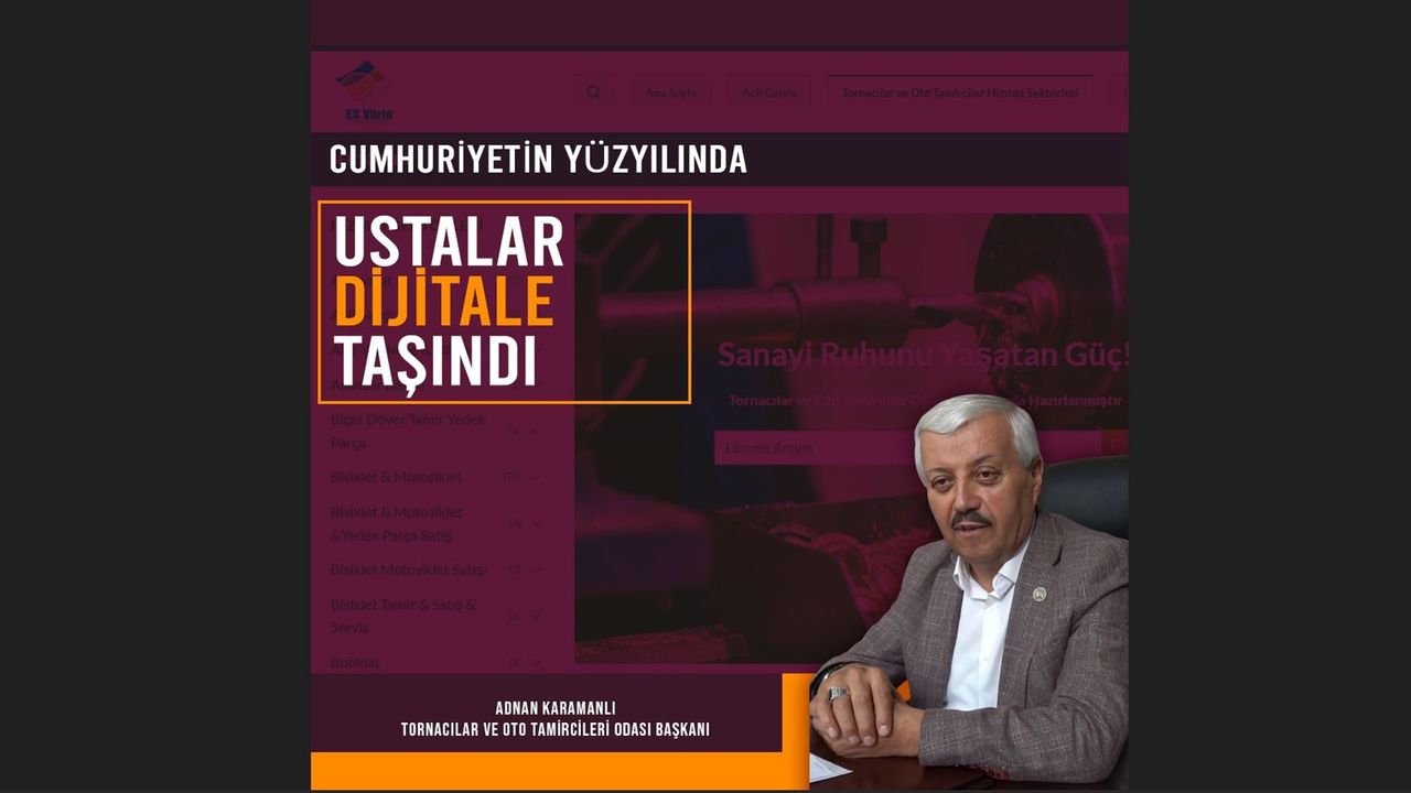 Cumhuriyetimizin 102. yılı coşkusuyla, esnafın emeği dijital dünyaya taşındı. Tornacılar ve Oto Tamircileri Odası ile Esvitrin Sektörel Online Platform arasında yapılan güçlü işbirliğiyle, sanayi esnafı artık dijital vitrinlerde de yerini aldı.