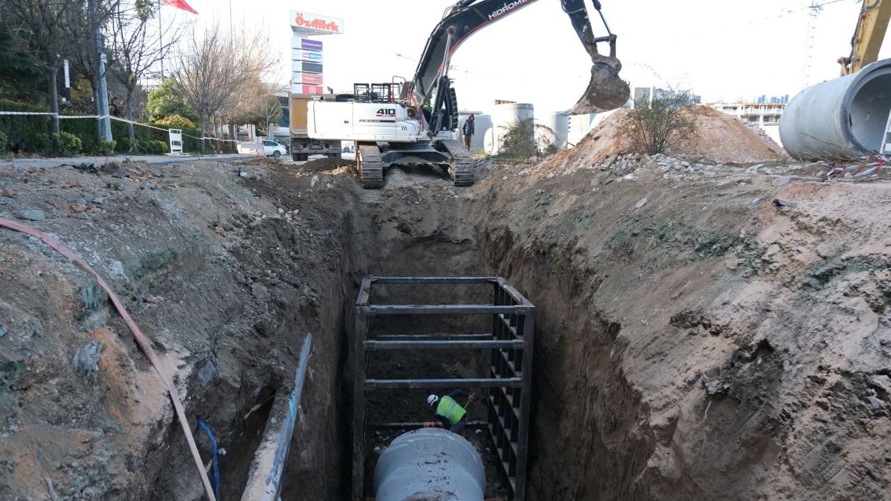 ESKİ ekiplerince yürütülen çalışmalar kapsamında, 1.400 mm çapında beton borular kullanılarak aktif olarak işleyen kanalizasyon hattında akış durdurulmadan ilk kez kullanılan canlı bağlantı yöntemiyle 152 metre uzunluğunda kanalizasyon hattı imal edildi. Hat üzerine yerleştirilen 4 adet muayene bacası ile ara sokak bağlantıları sağlanarak sistemin işletme verimliliği artırıldı. Yağmur suyu altyapısı kapsamında ise 400 mm çapında beton borular kullanılarak toplam 135 metre uzunluğunda yağmur suyu hattı oluşturuldu ve hatta 3 adet muayene bacası yerleştirildi.