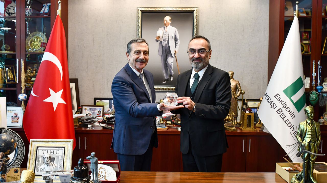 Ödül takdiminin ardından ise Başkan Ataç Genel Sekreter Yıldız ve beraberindeki heyeti, pişmiş toprak sempozyumu eserlerini ve Kağıt Geri Dönüşüm Atölyesini gezdirdi. Tepebaşı Belediyesi ana hizmet binası içerisinde yer alan eserlere ve atölyeye hayran kaldıklarını belirten heyet, Tepebaşı Belediye Başkanı Ahmet Ataç’a çalışmalarında başarılar diledi.