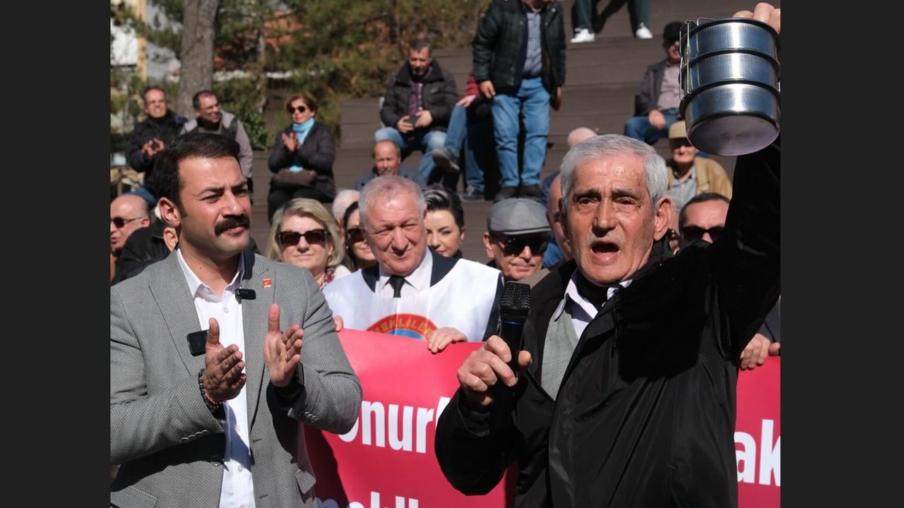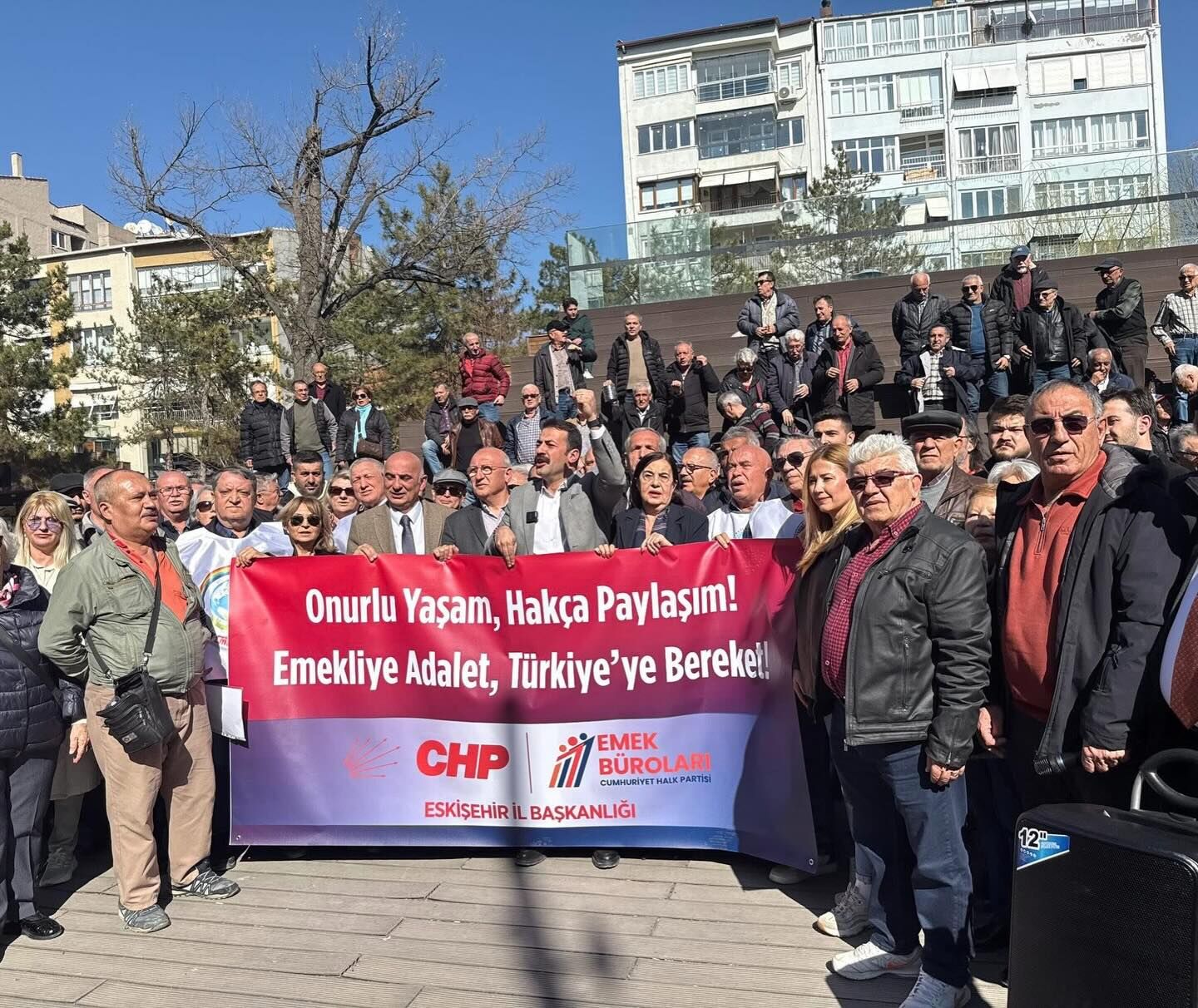 “Bugün burada Cumhuriyet Halk Partisi Eskişehir İl Örgütü olarak; emeklilerimizin yaşadığı büyük ekonomik bunalıma dikkat çekmek ve onların haklı mücadelesine omuz vermek için bir araya geldik.