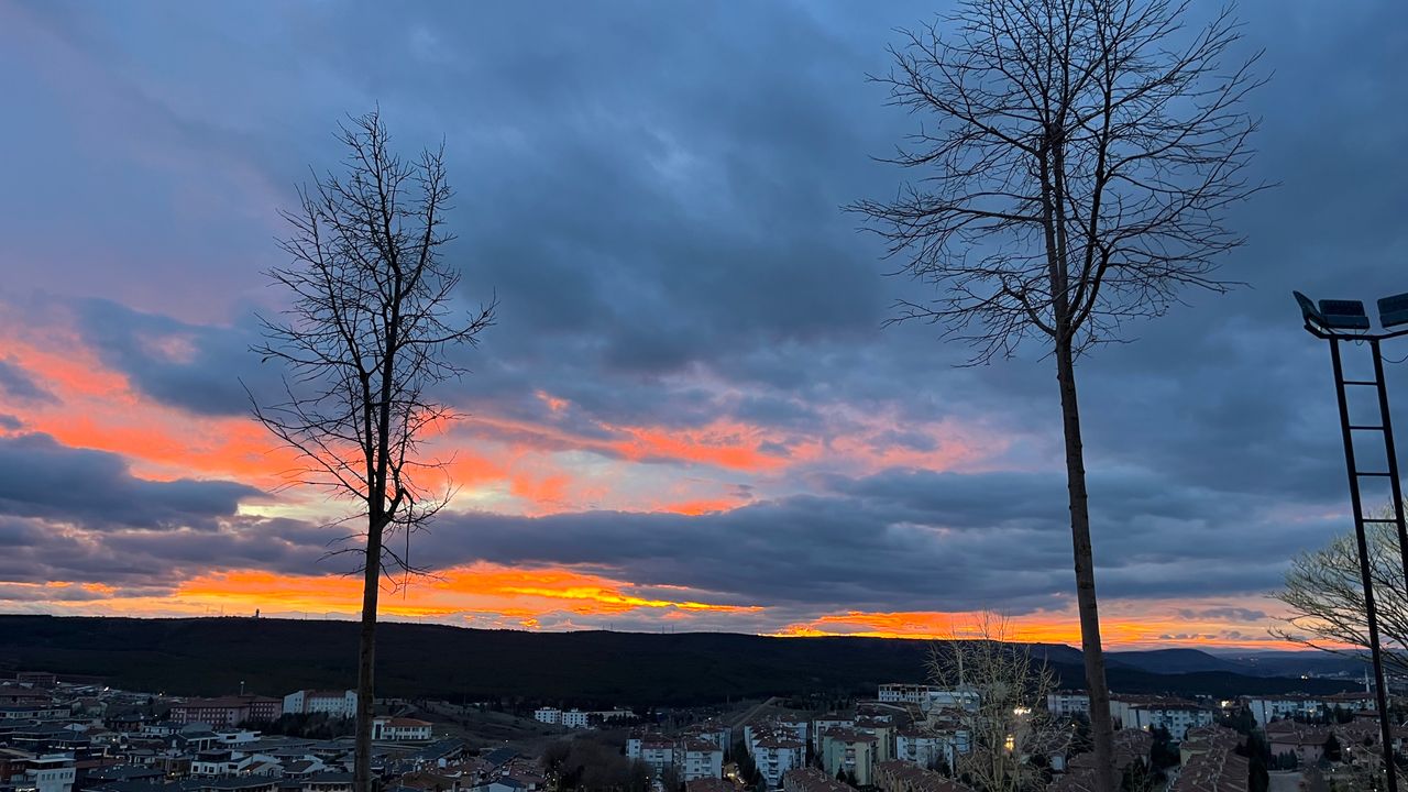 Eskişehir'de günün batışıyla birlikte gökyüzünde kartpostallık bir manzara oluştu. Güneşin batış anında yansıyan renkler, şehrin siluetiyle birleşerek seyirlik bir görüntü meydana getirdi. Akşam saatlerinde beliren bu doğal güzellik, şehrin pek çok noktasından eşsiz bir manzara sundu.
