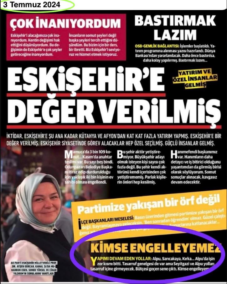 • ‘Öncelik’ denilen projeler sürüncemede kalıyor. Bu tablo bir gecikme değildir. Bu tablo, yıllara yayılan bir ihmalin belgesidir. Ne söylendiği ortada. Ne yapılıp, yapılmadığı da... Üstelik bugün gelinen noktada, iktidarın kendi temsilcileri de bu tabloyu kabul etmektedir. ‘Bunu bu zamana kadar yapmamız lazımdı, yapmadık’, ‘Paranın bol olduğu dönemi Eskişehir kullanamadı’, ‘Kimse bu işlere bakmamış’ sözleriyle, yaşanan ihmal açıkça itiraf edilmektedir. Yani ortaya çıkan tablo, bizim iddialarımız değil; iktidarın kendi ağzından kabulüdür. Biz yorum yapmıyoruz. Sadece ne söylendiğini ve neyin yapılmadığını tarihleriyle, belgeleriyle yan yana koyuyoruz. Sözler değişebilir. Belgeler değişmez. Devamı gelecek.”