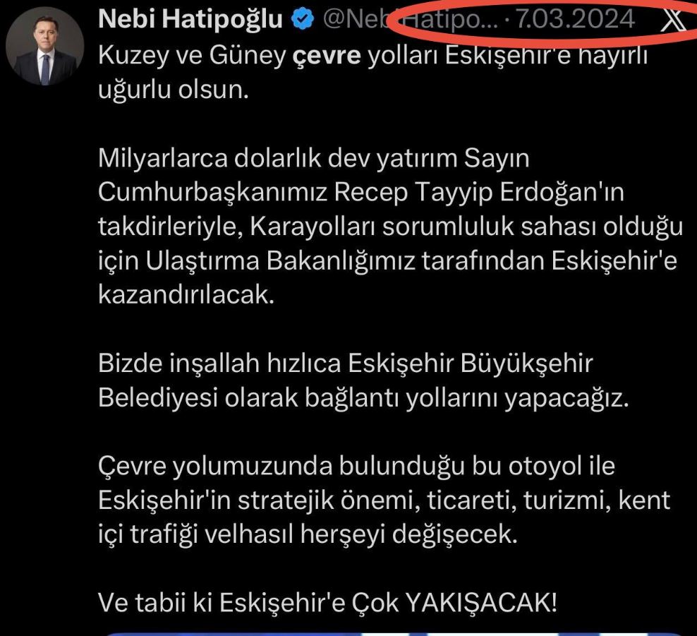 Eskişehir Çevre Yolu Yıllardır yapılacağı söylendi. Defalarca ‘karar alındı’, ‘süreç başladı’ denildi. Ama gerçek çok net: #Eskişehir Çevre Yolu, 2026 yılı Kamu Yatırım Programı’nda yok. Ne ihale var, ne ödenek, ne de bağlayıcı bir takvim. Üstelik çözüm olarak bugün, yap-işlet-devret modeliyle paralı yol öneriliyor. Yani yıllardır yapılmayan çevre yolu için, şimdi Eskişehirliden bedel ödemesi bekleniyor. İlçe bağlantı yolları 2017, 2019, 2020 ve 2022’de başlayan projeler var. 7–8-9 yıldır süren işler var. Milyarlarca liralık proje tutarları var. Ama belgelerin söylediği şu: