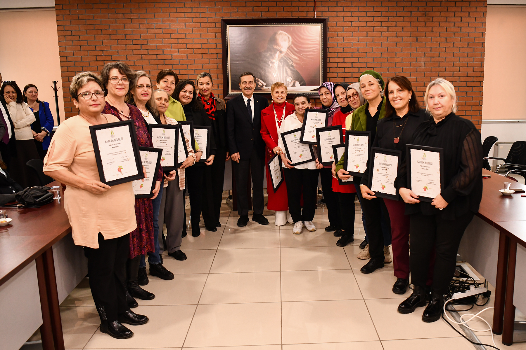 Konuşmaların ardından Başkan Ataç tarafından kursiyerlere katılım belgeleri verildi.