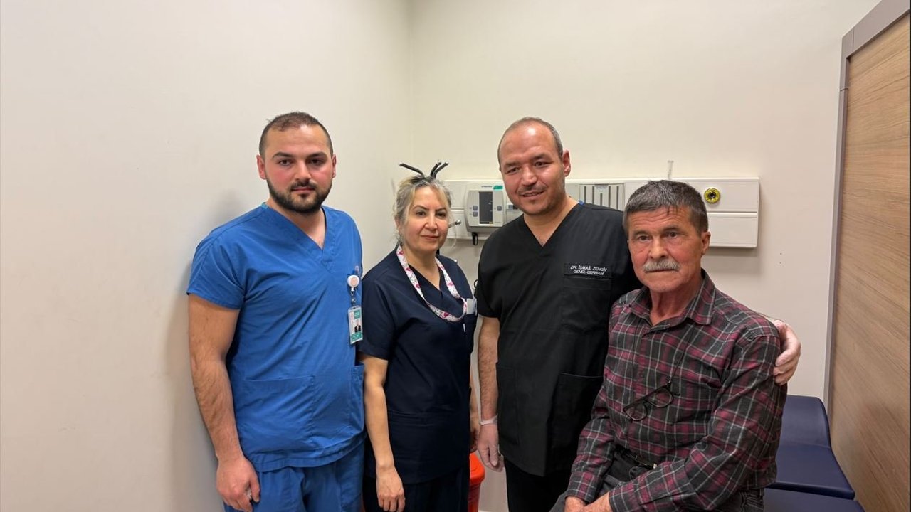 "Hastamız bize kasık fıtığı şikâyetiyle başvurdu. Bize gelen bütün hastalarımıza kasık fıtığı veya başka bir şikâyetle de gelse, genel taramalarını yaparak başka ek bir patoloji var mı diye bakıyoruz. Hastamızda da yaptığımız incelemede kalın bağırsağında bir kanser gördük, sağ kalın bağırsağında. Kalın bağırsak kanserleri açık ve kapalı yöntemlerle yapılabilmektedir ve hastamızdaki sağ kalın bağırsak, sağ taraftaki kanser; dünyada da dâhil, ülkemizde ve dünyada sadece gelişmiş merkezlerde laparoskopik olarak yapılabilmekte. Çok zor bir cerrahi işlemdir ve hayati riski yüksek olduğu için genellikle açık yapılması tercih edilir. Ancak bu konuda tecrübemiz ve deneyimimiz yeterli düzeyde olması nedeniyle hastamıza kapalı, laparoskopik cerrahi yöntemiyle ameliyatını başarılı bir şekilde tamamlayarak taburcu ettik ve hastamızın onkolojik süreci başladı. Yaklaşık 4 buçuk saat süren ameliyatımızı birkaç tane delikle tamamlamış olduk. Tümörü de yaklaşık 3 santimlik bir kesiyle tamamen vücuttan dışarıya almış olduk. Hastamız şu an gayet sağlıklı; hastamızı 7 gün yatırdıktan sonra taburcu ettik."