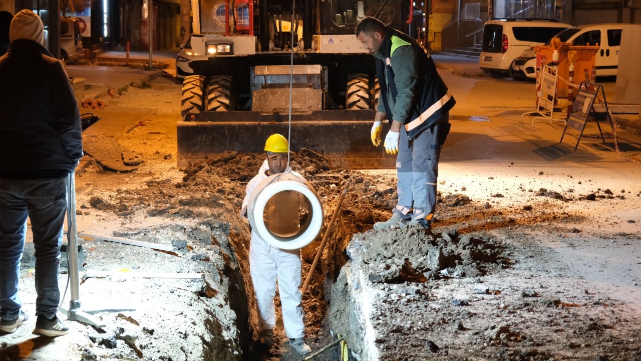 Araç ve yaya trafiğinin yoğun olduğu bölgede altyapı çalışmaları, şehir yaşamını aksatmamak amacıyla gece saatlerinde gerçekleştirildi. ESKİ ekipleri, hat deplasesi kapsamında 400 mm çapında beton borular kullanarak 165 metre uzunluğunda yeni yağmur suyu hattı imal etti.