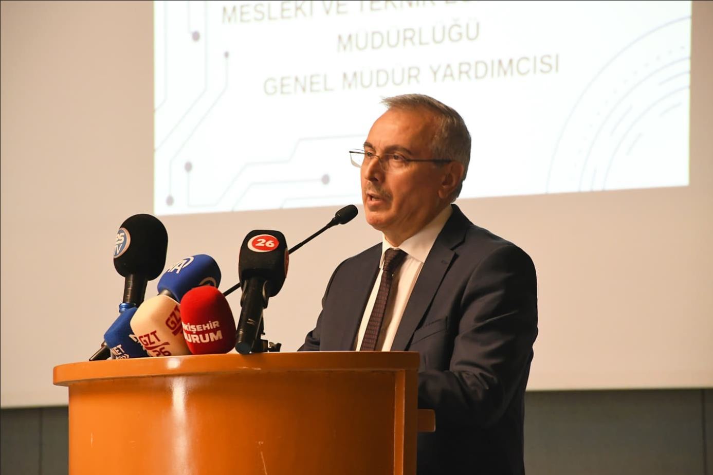 Meslekî ve Teknik Eğitim Genel Müdür Yardımcısı Mehmet Bal, konuşmasında meslekî eğitimin Türkiye'nin kalkınma hamlesinin temel direği olduğunu belirterek, "Bugün ülkemizde 3.400'ü aşkın meslekî eğitim kurumunda 1.6 milyon öğrencimiz eğitim görüyor. Eskişehir'deki 34 meslek lisesinde ise yaklaşık 16.800 öğrencimiz var. Bu gençlerimiz geleceğin üretim gücünü temsil ediyor. Çalıştayda ortaya konacak her fikir, hem Eskişehir'in hem ülkemizin meslekî eğitim vizyonuna yön verecektir" ifadelerini kullandı.