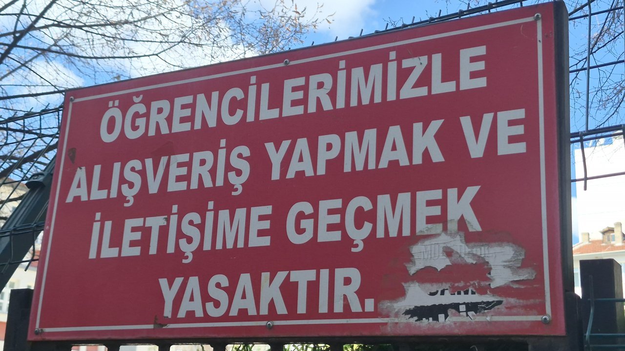 Özellikle yoldan geçenlerin durup baktığı uyarı notu, okul çevresindeki alışılagelmiş manzaraların dışına çıktı. Okul yönetimi tarafından asıldığı tahmin edilen ve dış dünyayla teması tamamen kesmeyi amaçlayan bu uyarı metni, hem dili hem de konumu itibarıyla bölgedeki konuşulan konulardan biri haline geldi.