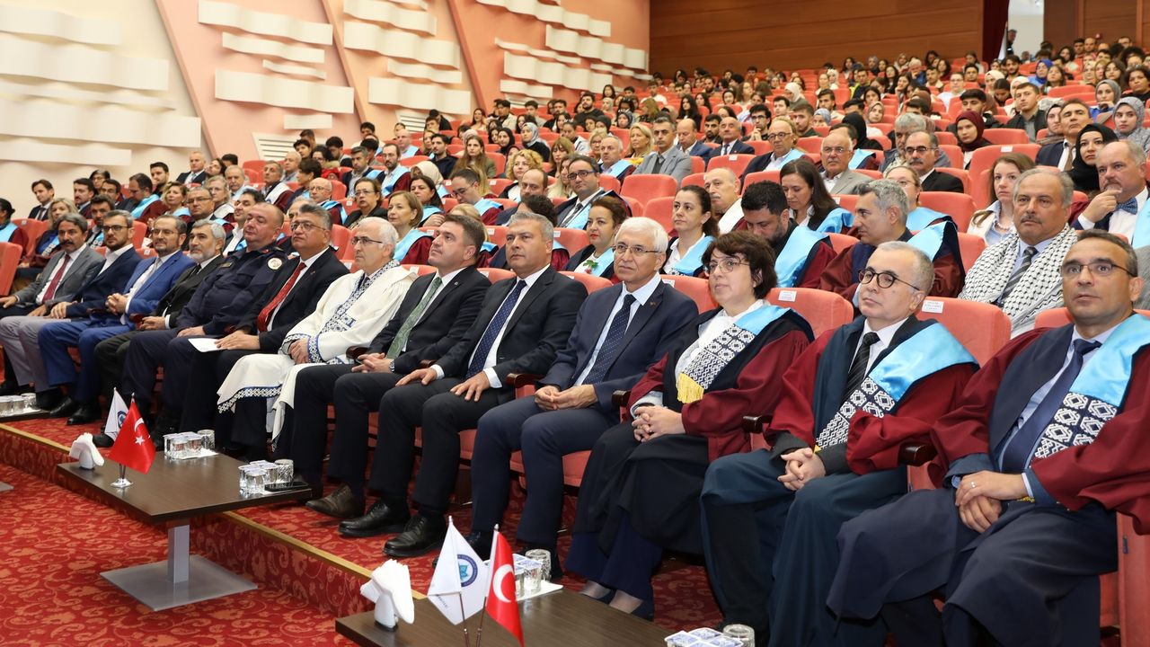 2025-2026 akademik yılında ESOGÜ ailesine katılan öğrencilere de hoş geldiniz diyerek kendilerini kutlayan Rektör Prof. Dr. Kamil Çolak, bu yıl katılan yeni öğrencilerle birlikte 30 bini aşkın öğrencisi olan ESOGÜ’de tüm öğrencilerin üniversite hayatları boyunca gerek akademik gerekse sosyal yönden güçlenmeleri için ellerinden gelenin en iyisini yapmayı, onlara her anlamda destek olmayı görev bildiklerini söyledi. Prof. Dr. Çolak ayrıca; şehit, gazi yakını ve Filistinli öğrencilerin de yer aldığı ESOGÜ öğrencilerine üniversite birimlerinde kısmi zamanlı çalışma imkanı ve yemek bursu sağlayarak destek olduklarını da sözlerine ekledi. Yeni akademik yılın açılış heyecanını yaşarken aynı zamanda uluslararası insani sorumluluklarını hatırlayarak, gençlerimizin bu değerlerle yetişmesini önemsediklerini dile getiren Prof. Dr. Çolak, bu nedenle akademik açılış programının devamında, Filistin’de yaşananlara dair daha derinlikli bir perspektif sunmak üzere Dumlupınar Üniversitesi Rektörü Prof. Dr. Süleyman Kızıltoprak’ı açılış dersini sunmak üzere konuk ettiklerini söyledi ve davetlerine icabet ettiği için kendisine teşekkürlerini sundu. Prof. Dr. Çolak yeni öğretim yılının tüm öğrenciler ve akademisyenler ile ülkemize hayırlı olmasını dileyerek konuşmasını tamamladı.