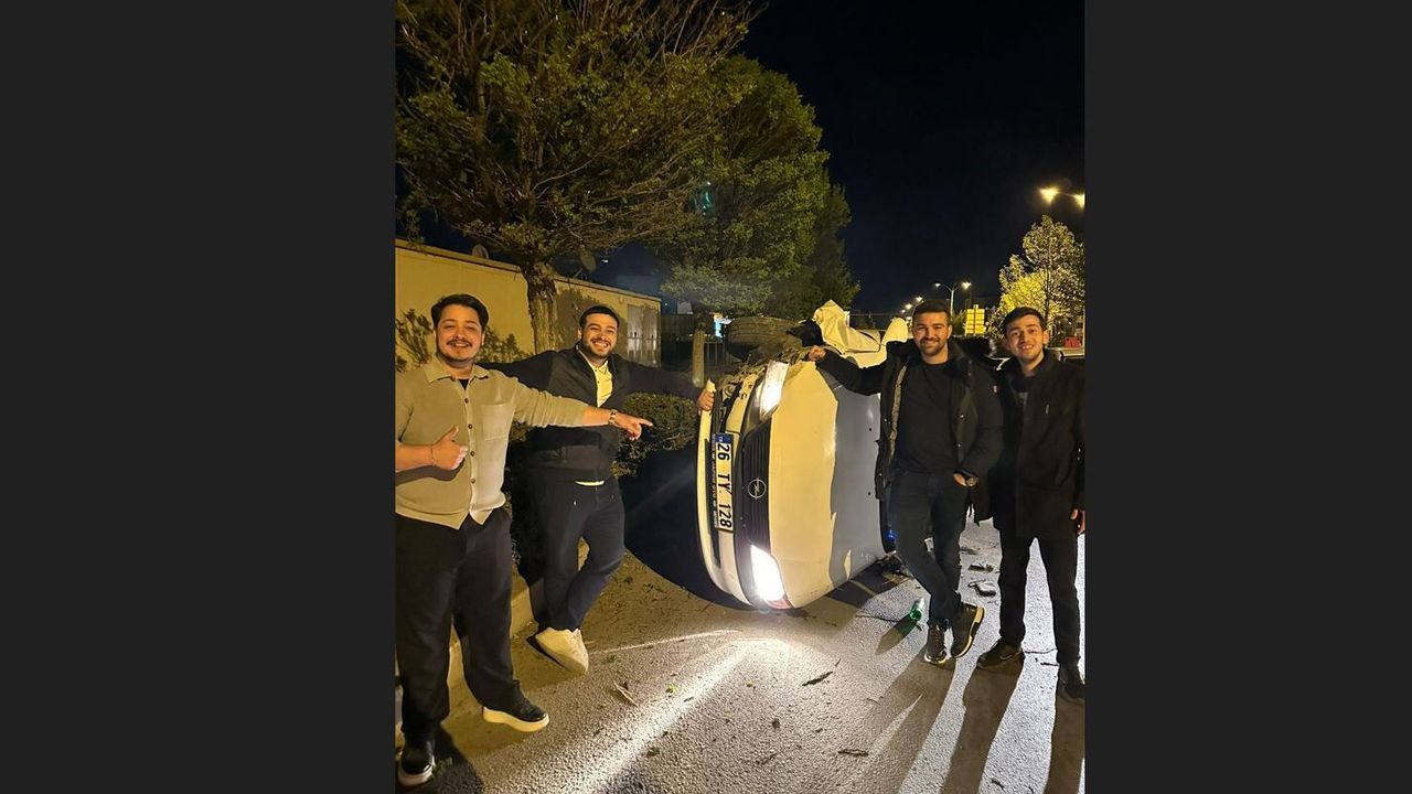 Eskişehir'de bir süre önce yaşanan bir kaza ardından yaşanan ilginç anlar dikkat çekti. Büyükdere Mahallesi Atatürk Bulvarı üzerinde meydana gelen kazada, 26 TY 128 plakalı otomobil sürücüsünün direksiyon hakimiyetini kaybetmesi sonucu araç yan yattı. İddiaya göre sürücünün olay yerinden ayrıldığı kazanın ardından bir arkadaş grubu, kaza mahalline geldi. Arkadaş grubu içinde kimsenin bulunmadığı yan yatmış araçla hatıra fotoğrafı çekindi.