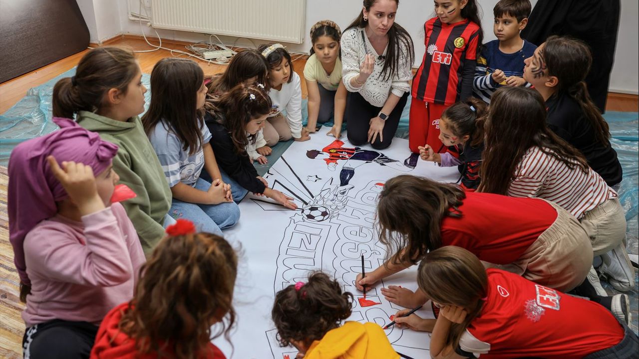 Ziyaretin en renkli bölümü ise "Pankart Atölyesi" oldu. Çocuklar, “Kırmızı Şimşekler” yazılı pankartı Eskişehirspor için boyadı. Etkinlik sonunda, hazırladıkları pankartlarla futbolcularla toplu fotoğraf çektiren çocukların mutluluğu gözlerinden okundu.