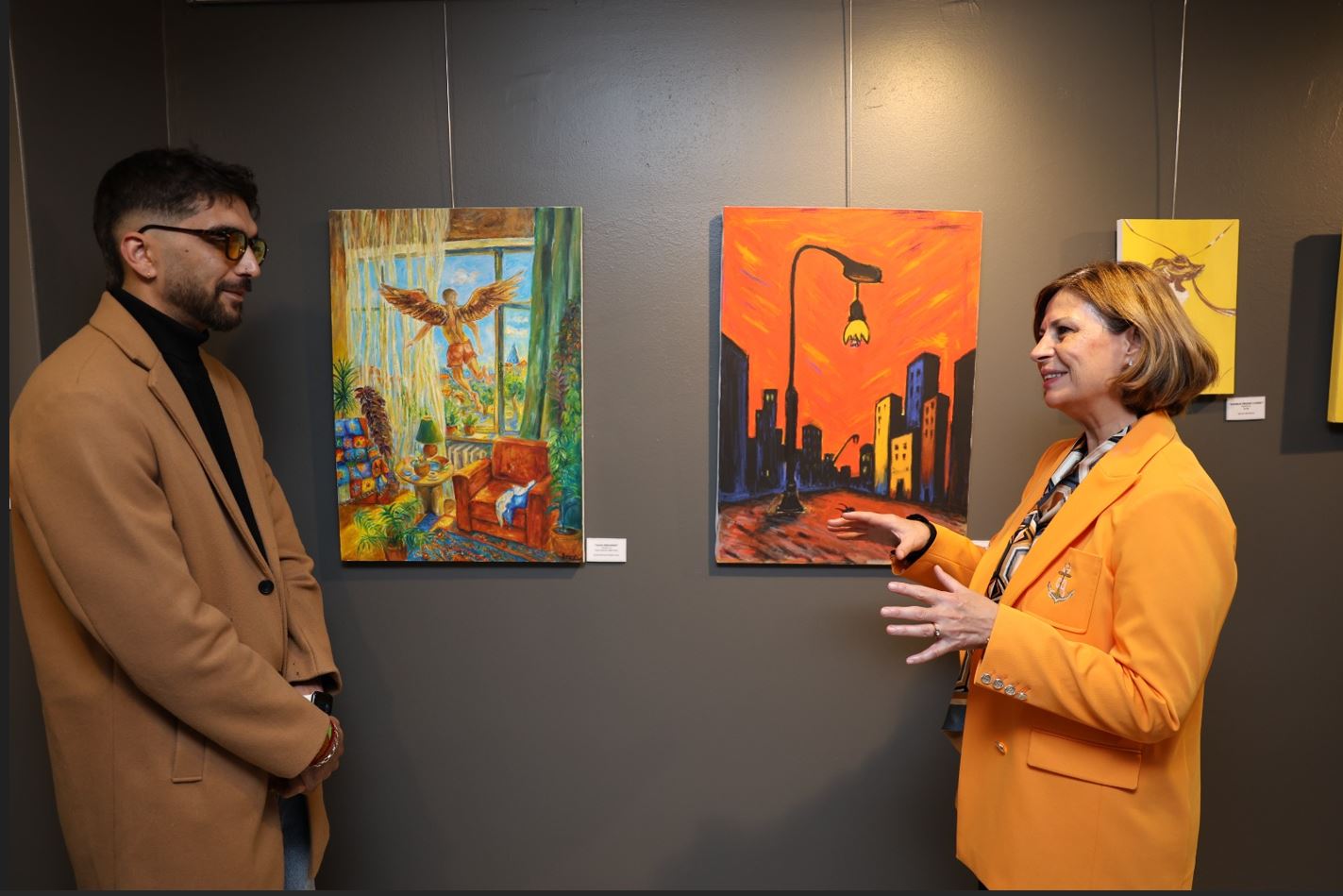 Panelin ardından açılan sergide konuşan Dernek Başkanı Tecelli Sercan Sırma, “Bugün, hem derneğimiz hem de Türkiye adına tarihi bir gün yaşıyoruz. Türkiye'de ilk kez bir belediye, bir sivil toplum kuruluşu ile iş birliği yaparak, ülkemizin ve dünyanın en önemli meselelerinden biri olan göç konusunu sanatın evrensel diliyle ifade ediyor. Savaşların, ekonomik zorlukların ve toplumsal gerilimlerin yaşandığı bir dönemde, sanatın barışçıl dilini kullanma imkânını bize sunan Eskişehir Büyükşehir Belediye Başkanımıza içten teşekkürlerimi sunuyorum. Bir dönem Yunus Emre’nin hayatını kaleme almıştım. Oradan zihnime kazınan bir dizeyle sözlerimi tamamlamak istiyorum: ‘Biz bu dünyada göçer olduk, kalanlara selam olsun. Bizden sonra böyle kalacaksan dünya, kalanlara para zıkkım olsun.’ Teşekkür ederim” ifadelerini kullandı.