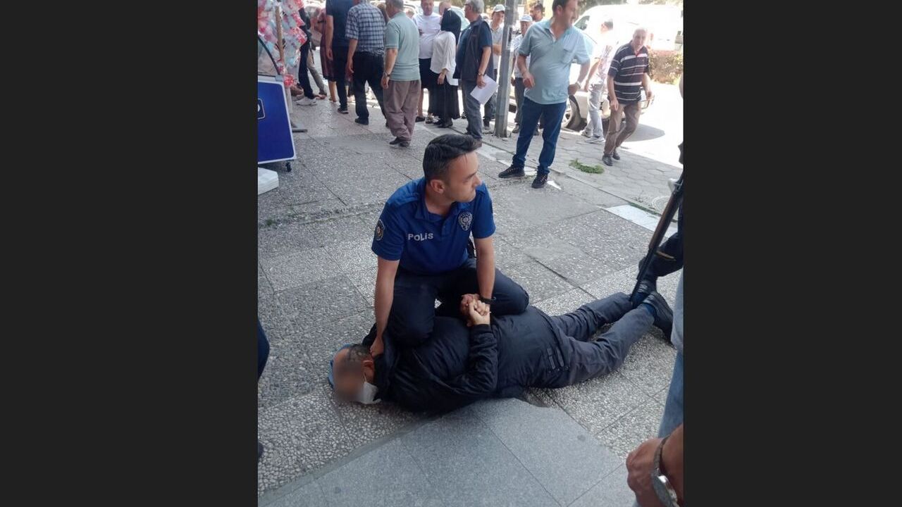 "Ben kart işlemleri için gelmiştim, bir tane polis arabası yanıştı. Sen ne yapıyorsun deyip silah doğrulttu ben de şaşırdım. Şahıs çıktı tüfeği kapıya yasladı. Polis müdahale etti. İçeride olayların ne olduğunu bilmiyorum."