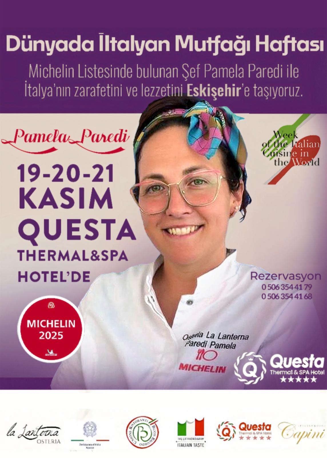 Tüm gastronomi tutkunlarının davetli olduğu bu özel hafta boyunca konuklar: Şef Paredi’nin İtalyan mutfağındaki ustalığını, Yerel ürünleri İtalyan dokunuşuyla harmanladığı yaratıcı menülerini, Eskişehir’in kültürel mirası Küllüoba ekmeğinin modern yorumunu tatma fırsatı bulacaklar. Etkinlik 19–20–21 Kasım tarihlerinde Questa Thermal & Spa Hotel ev sahipliğinde gerçekleşecektir.