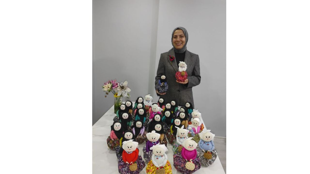 Emine Karaarslan tarafından tasarlanan bir bez bebek, Mihalgazi Belediye Başkanı Zeynep Güneş Akgün'ün geleneksel kıyafetlerine benzerliğiyle dikkat çekiyor.