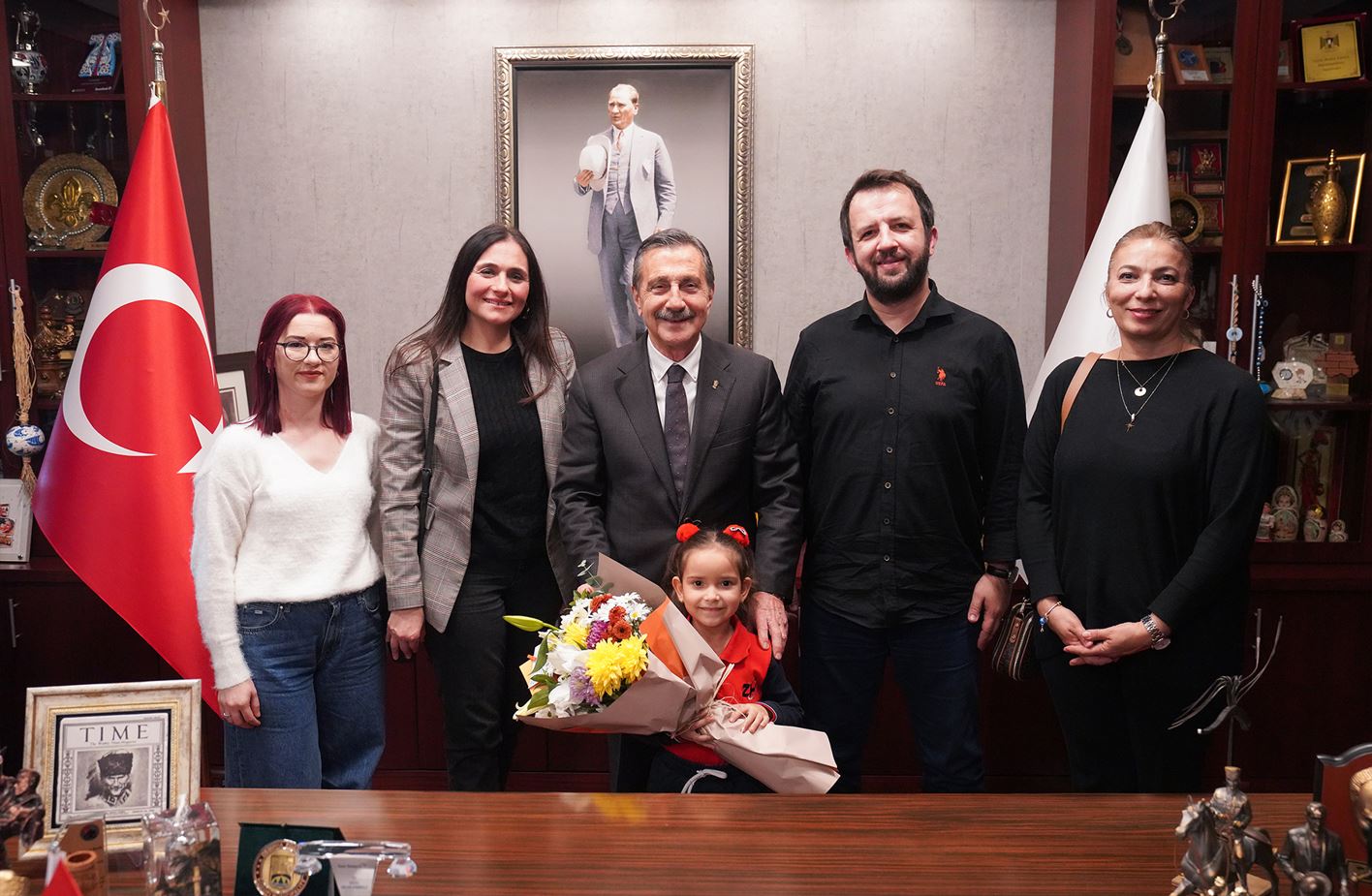 Ziyarette Başkan Ataç, Ebrar Yavuz’un gösterdiği emek ve cesaretinden dolayı mutluluğunu dile getirerek, minik konuğuna hediyeler verdi. Samimi ve neşeli anların yaşandığı ziyaret, hatıra fotoğrafı çekilmesiyle sona erdi.