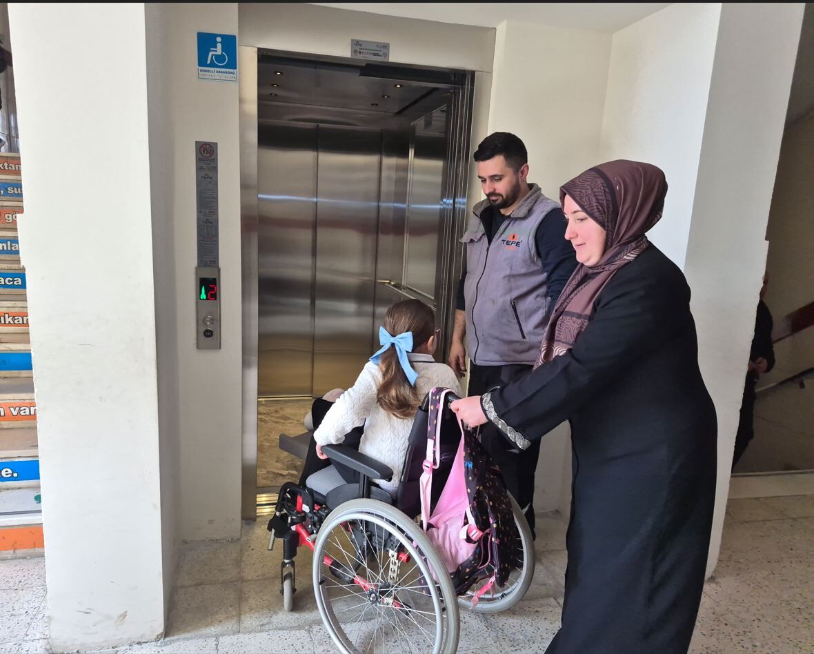 Okul aile birliği yetkilisi Döndü Köleoğlu ise, "Şu anda asansörümüz kullanıma açıldı ama diğer çocuklarımız için bir engel teşkil etmiyor, kartla giriş yapılıyor. Hepimizin çocuğu bir engelli adayı. Asansör diğer öğrencilerimiz için de, velilerimiz için de, öğretim görevlilerimiz için de çok kullanışlı oldu" diye belirtti.