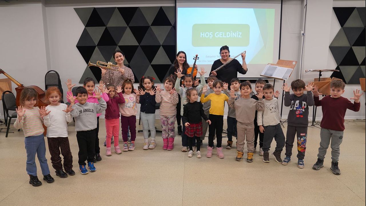 Tepebaşı Belediyesi Çocuk Senfoni Orkestrası Eğitim ve Çalışma Merkezi, ana sınıfı ve ilkokul öğrencilerini misafir ederek çocukların müzik aletlerini tanımalarına fırsat sağlıyor.