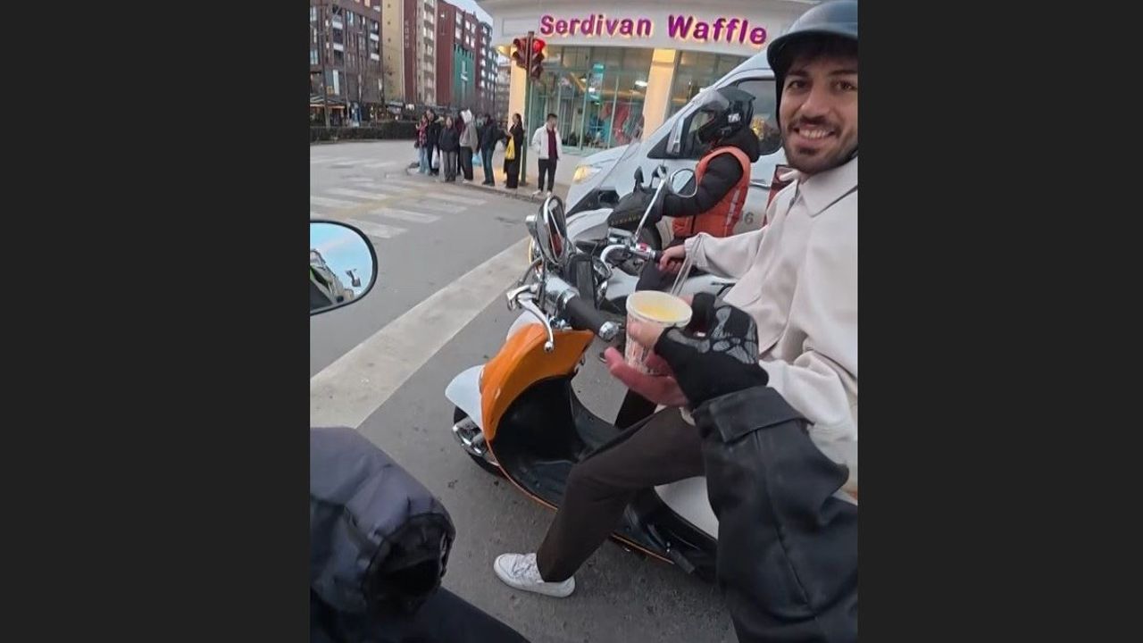 Eskişehir’de çalışan bir kurye, motosikletine yerleştirdiği bir şişe sıcak bozayı karton bardaklarla yaya ve diğer sürücülere ikram etti. Soğuk kış günlerinde kuryenin boza ikramı karşısında şaşıran vatandaşlar sürpriz karşısında mutlu olduklarını dile getirerek teşekkür etti. Cadde ve sokaklarda hem işini yapan kurye, hem de vatandaşların sevgisini kazandı. Yaşananlar ve vatandaşların olumlu 'boza' tepkisi kuryenin kask kamerasına yansıdı.