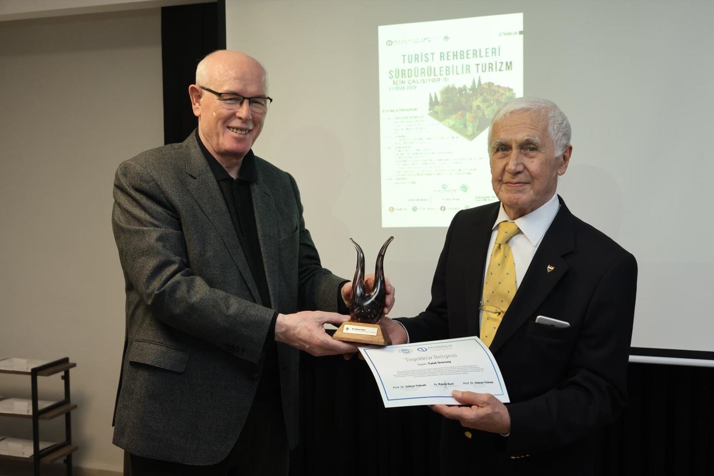 Turizm Fakültesi ve Odunpazarı Belediyesi iş birliğinde düzenlenen “Turist Rehberleri Sürdürülebilir Turizm İçin Çalışıyor-3” etkinliği, Odunpazarı Belediyesi Sanat Merkezi’nde gerçekleştirildi. Etkinlikte, sürdürülebilir turizm projeleri ve lületaşı ele alındı. Anadolu Üniversitesi Turizm Rehberliği Bölümü öğrencileri tarafından hazırlanan sürdürülebilirlik temalı projelerin sunulduğu etkinliğe; Odunpazarı Belediye Başkanı Kazım Kurt, Turizm Rehberliği Bölüm Başkanı Prof. Dr. Gökçe Yüksek, Turizm Fakültesi Dekan Yardımcısı Doç. Dr. İnci Oya Coşkun, Lületaşı Ustası Talat Ürersoy, öğretim elemanları ve çok sayıda öğrenci katıldı. Program kapsamında, lületaşının kültürel miras değeri, Eskişehir’de kültürel miras alanlarının korunması, Pessinus Antik Kenti, Odunpazarı bölgesinde aşırı turizmin etkileri ve sürdürülebilir ziyaretçi planlaması gibi birçok başlık ele alındı. Odunpazarı Belediye Başkanı Kazım Kurt: “Burada yeni bakış açıları ve tasarımlar gerekiyor. Bunu yapacak olan da bilim ve üniversitedir” Üniversite ve yerel yönetim iş birliğinin önemine dikkat çekerek Odunpazarı turizminin ancak tüm paydaşların ortak hareketiyle canlanabileceğini vurgulayan Başkan Kurt, konuşmasında şu ifadelere yer verdi: “Odunpazarı turizmi ancak esnafı, kamu kurumları, belediyesi ve üniversitesiyle birlikte hareket ederse canlanır. Lületaşını sadece pipoya endeksleyerek geliştirmeye çalışmışız. Burada yeni bakış açıları ve tasarımlar gerekiyor. Bunu yapacak olan da bilim ve üniversitedir. Alan Başkanlığı’nın aktif olarak çalışmasını sağlamak ve katılımcı bir anlayışla sonuç çıkarmak gerekir.” Turizm Rehberliği Bölüm Başkanı Prof. Dr. Gökçe Yüksek, bu yılki temanın "sosyal sürdürülebilirlik" olduğunu belirtti. Prof. Dr. Yüksek konuşmasında şunları ifade etti: “Biz turist rehberlerinin turizmin sürdürülebilirliğinde çok ciddi rolleri olduğunu biliyoruz. Bakanlığımız tarafından da zorunlu bir ders haline gelen bu süreci, topluma katkıya dönüştürecek ve somut çıktılar üretecek çalışmalarla taçlandıralım istedik. Üç yıldır farklı kurumlarla paydaş olarak düzenlediğimiz etkinliğimizde bu yıl Odunpazarı Belediyemiz bize paydaş oldu.” Etkinliğin onur konuğu Lületaşı Ustası Talat Ürersoy, lületaşının milyonlarca yıl öncesine dayanan oluşum sürecini hatırlatarak Eskişehir için taşıdığı tarihsel ve jeolojik öneme şu sözlerle dikkat çekti: “Lületaşı, 38 milyon yıllık jeolojik bir geçmişe sahip, bu coğrafyaya özgü eşsiz bir mirastır. Bu değeri yalnızca işlenen bir malzeme olarak değil, bu toprakların milyonlarca yıllık tarihi olarak görmemiz gerekiyor. Bu köklü mirasın korunması ve sürdürülebilir bir şekilde geleceğe aktarılması en büyük sorumluluğumuzdur.” Öğrencilerin de aktif olarak yer aldığı sunumlarda, sürdürülebilir turizm uygulamaları ve turist rehberlerinin bu süreçte üstlendiği sorumluluklar farklı boyutlarıyla değerlendirildi. Etkinlik, belge teslim töreninin ardından sona erdi. Program, akademi, yerel yönetim ve öğrencileri bir araya getirerek sürdürülebilir turizm konusunda farkındalık oluşturmayı amaçladı.