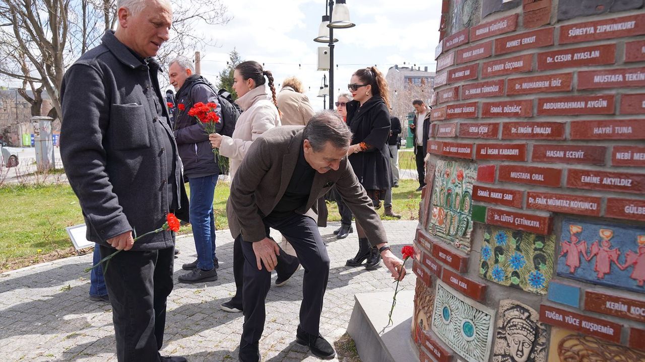 Konuşmaların ardından ise koronavirüs pandemisinde yaşamını yitiren sağlık çalışanları için anıta karanfil bırakıldı.