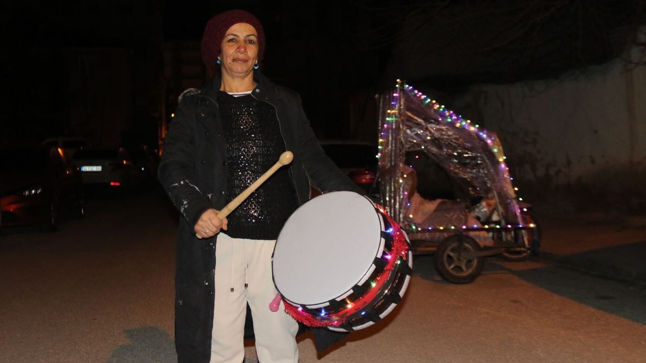 "Küçük bir mahalle, insanların yüreği büyük. Sonra vesileyle muhtarımla tanıştırdılar. Muhtarımın yanına geldim, çok güzel bir gönlü var Allah razı olsun. O da çok güzel bir şekilde destekledi. Daha güzel görünsün, insanlar hem tedirgin olmasın, daha hoş olsun diye motorumu ve davulumu ışıklarla süsledim. Sokağın başında motosikletimle duruyorum, sonra sokak boyunca yürüyerek davulumu çalıyorum. Orayı bitirdikten sonra tekrar motoruma binip diğer sokaklara geçiyorum. Kadın olduğum için biraz da tedirgin oluyorum, korkuyorum ama insanlarımız Allah razı olsun çıkıp balkonda el sallamaları bana özgüven veriyor. İlk çaldığımda biraz çok korktum ama Allah razı olsun muhtarımız da daha önce beni sosyal medyada ‘davulcumuz' diye paylaştığı için rahatım. Balkonda bana bakmaları, el sallamaları oldu, selam veren oldu. İlk günü çok soğuktu, kar yağıyordu, biraz üşüdüm gerçekten. Saat 3'te çalmaya başlıyorum, saat 03.50'ye kadar yani bitiriyorum."