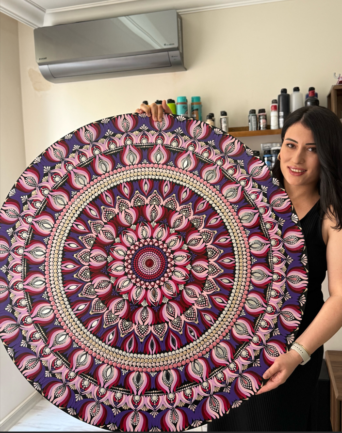 Mandala, Sanskritçe’de “çember” anlamına gelir. İlk olarak Hindistan’da ortaya çıkmış, zamanla Budizm ve Hinduizm kültürlerinde önemli bir yere sahip olmuştur. Sadece estetik bir desen değil, aynı zamanda ruhsal bir yolculuğun simgesidir. Mandalanın merkezden başlayıp dışa doğru genişleyen yapısı, hayatın döngüsünü ve insanın içsel yolculuğunu temsil eder. Felsefesinde denge, bütünlük ve sonsuzluk vardır. Benim için mandala, sadece bir sanat değil; aynı zamanda bir meditasyon ve kendini keşif yoludur. Her desen, insanın iç dünyasından bir parça taşır ve yaparken hem ruhum dinleniyor hem de kendi iç sesimi duyabiliyorum.