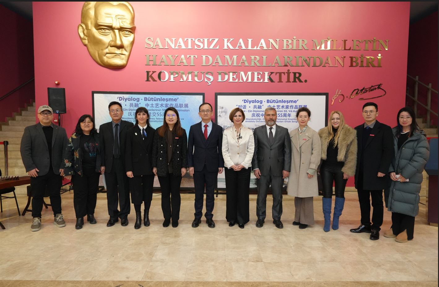 Atatürk Kültür Sanat ve Kongre Merkezi’nde gerçekleştirilen sergi, sanatın evrensel diliyle iki ülke arasındaki kültürel bağları görünür kıldı. Çin Halk Cumhuriyeti Büyükelçiliği, Changzhou Teknoloji Enstitüsü (CIT) ve Anadolu Üniversitesi iş birliğiyle hayata geçirilen serginin açılış törenine; Eskişehir Büyükşehir Belediye Başkanı Ayşe Ünlüce, Çin Halk Cumhuriyeti’nin Türkiye Cumhuriyeti Büyükelçisi Jiang Xuebin, Anadolu Üniversitesi Rektörü Prof. Dr. Yusuf Adıgüzel, Changzhou Teknoloji Enstitüsü Başkan Yardımcısı Prof. Gan Fangqun, akademisyenler, sanatçılar ve çok sayıda sanatsever katıldı.