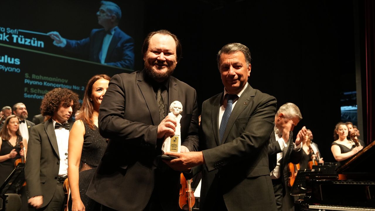Konserin ilk bölümünde, romantik dönem Rus bestecilerinden S. Rahmaninov’un başyapıtlarından biri olan 2 numaralı piyano konçertosu seslendirildi. İlk kez 1901 yılında Moskova’da bestecinin kendi solistliğinde icra edilen ve o günden bu yana klasik müzik repertuvarının vazgeçilmezleri arasında yer alan eser teknik zorlukları ve derin duygusal anlatımıyla dikkat çeken eserlerden biridir. Gökhan Aybulus’un yorumuyla hayat bulan konçerto, salondaki dinleyicilerden büyük beğeni topladı. Dinmeyen alkışları karşılıksız bırakmayan sanatçı J.S. Bach’ın A.Siloti tarafından düzenlenen prelüdü ile bis yaptı.