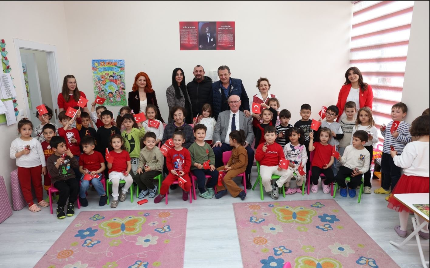 Kreşi gezen, sınıfları tek tek dolaşan Erkara, çocukların günlük eğitim ortamını yerinde inceledi. Ancak ziyaretin en renkli anları, miniklerin hazırladığı sürprizle yaşandı. Günler öncesinden hazırlık yapan çocuklar, Erkara için özel bir gösteri düzenledi. Renkli görüntülere sahne olan etkinlikte çocukların neşesi ve heyecanı dikkat çekti. Çocuklarla yakından ilgilenen Erkara, onlarla oyunlar oynadı, birlikte resimler yaptı. Samimi anların yaşandığı buluşmada, sınıflar adeta bir şenlik alanına dönüştü. Bu anlamlı günde Erkara’nın da miniklere bir sürprizi vardı. Çocuklara çeşitli hediyeler getiren Erkara, onların 23 Nisan Ulusal Egemenlik ve Çocuk Bayramı’nı kutladı. Hediyelerini alan çocukların mutluluğu yüzlerinden okunurken, ortaya sıcak ve unutulmaz görüntüler çıktı. Ziyaret sırasında konuşan Başkan Kazım Kurt, Erkara’nın eğitime verdiği katkının çok kıymetli olduğunu vurgulayarak, “Çocuklarımızın daha iyi şartlarda eğitim almasına sunduğunuz destek bizim için çok değerli. Bu mutluluğu birlikte yaşamak bizleri ayrıca gururlandırıyor” dedi. Başkan Kurt ve Şerife Aysel Erkara, ziyaret boyunca çocuklarla yakından ilgilenmeye devam ederken, kreşteki bu buluşma hem minikler hem de büyükler için hafızalarda yer edecek bir gün olarak kayda geçti.