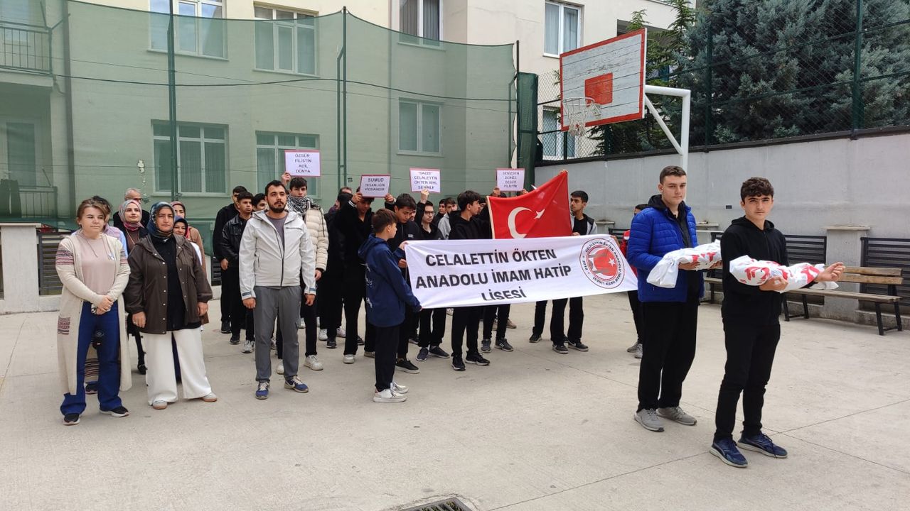 “Çocuklar ölürken sessiz kalınmaz” sloganını hep bir ağızdan dile getiren öğrenciler, Gazze’de yaşanan acılara karşı duyarlılık çağrısında bulundu.z Öğretmenlerinin rehberliğinde gerçekleştirilen etkinliklerde öğrenciler, vicdan, adalet, merhamet ve insan olmanın sorumluluğu üzerine düşünme fırsatı buldu. Etkinliklerde ayrıca, barışın ve insan haklarının evrensel bir değer olduğu vurgulandı.