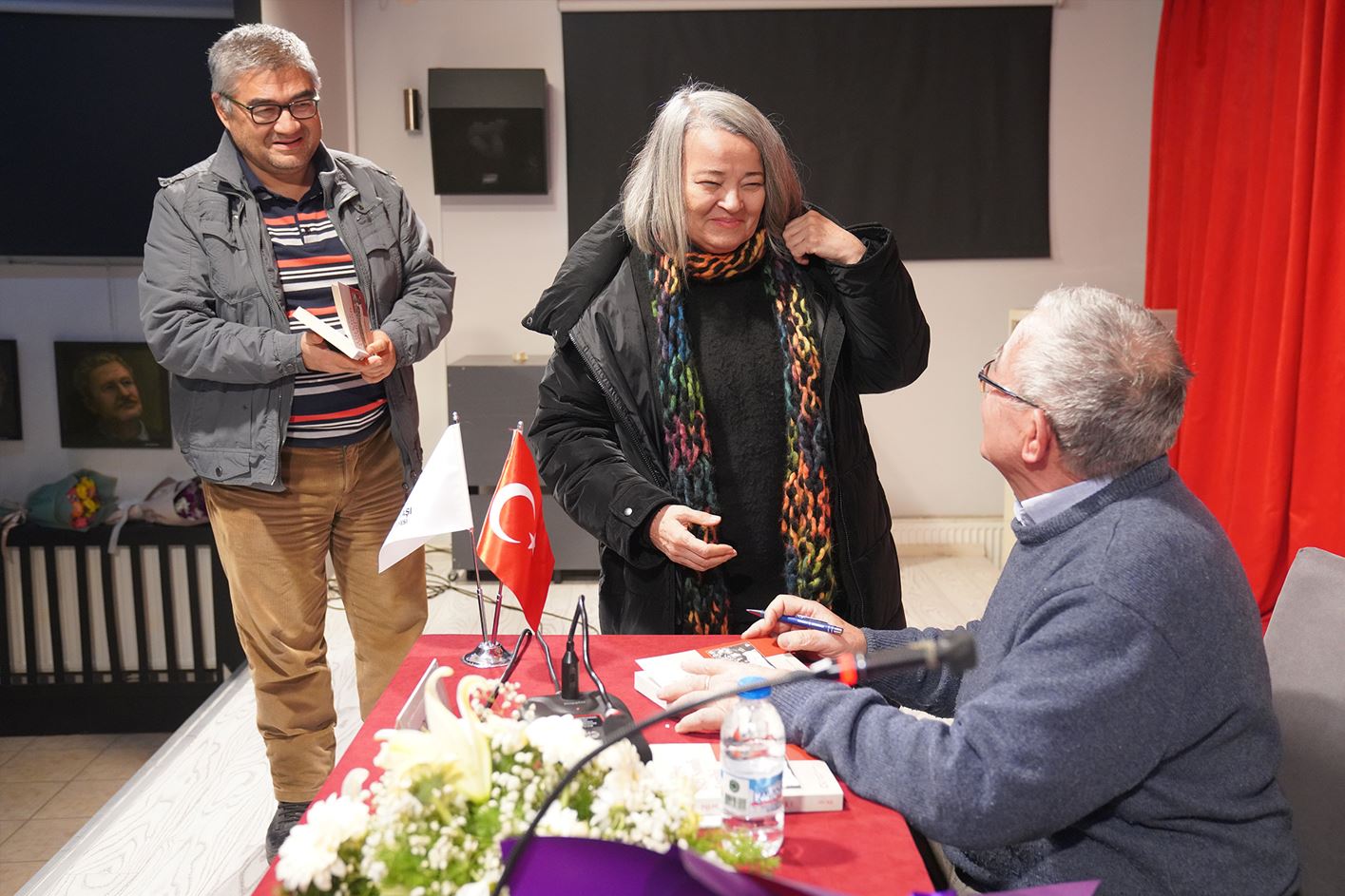 Koç, söyleşinin ardından okuyucuları için kitaplarını imzaladı.
