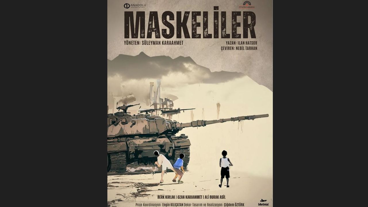 Maskeliler oyununun yönetmenliğini Anadolu Üniversitesi Devlet Konservatuvarı Tiyatro Anasanat Dalı Dr. Öğretim Üyesi Süleyman Karaahmet, Proje Koordinatörlüğünü de Öğr. Gör. Engin Kılıçatan üstleniyor. Maskelilerin oyuncu kadrosunda ise Öğr. Gör. Berk Kırlak, Ozan Karaahmet ve Ali Burak Asil yer alıyor. İlk olarak Amerika’da ardından Avrupa’da sahnelenen ve büyük yankı uyandıran Maskeliler oyunu evrensel bir konuya değiniyor. İsrailli yazar İlan Hatsor tarafından yazılan, Türkiye’de ve dünyada birçok tiyatronun sahnelediği ve sahnelemeye de devam ettiği Maskeliler oyunu, Filistinli üç erkek kardeşin, savaşın gölgesinde birbirleriyle yüzleşmelerini anlatıyor. Hikâye, yıllar sonra bir araya gelen bu üç kardeşin geçmiş hesaplaşmaları, ideolojik farklılıkları ve ihanet suçlamaları etrafında şekilleniyor. Bu üç karakter arasında geçen sert diyaloglar hem aile bağlarını hem de savaşın bireyler üzerindeki yıkıcı etkisini gözler önüne seriyor.