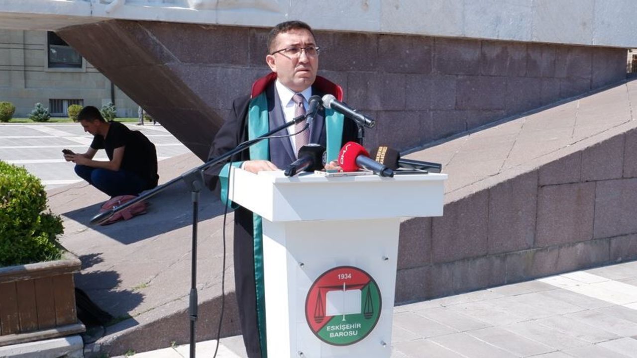 Mesleki dayanışma ve birliğimizden kaynaklanan örgütlü gücümüzle yurttaşlarımızın yüreğinde canlandırdığımız adalet umudunun solmasına izin vermeyeceğiz. Yargı ve toplum adına en kötü şey yargının siyasallaşmasıdır. Siyasallaşmış bir yargı düzeninde kimsenin can, mal ve hukuk güvenliği olmaz/ olamaz. Siyasallaşmış bir yargı düzeninde siyasi otoritenin isteği dışında bir karar verilemez. Yargıç koltuğunda oturan kişi kendisini o makama layık görene hizmet eder. Buradan da adalet çıkmaz. Burada sadece avukatlara değil, toplumun tüm kesimine görev düşmektedir. Hukuksuzluklara karşı bilinçli bir toplum olarak yasal sınırlar içinde karşı çıkılması, hak ve hürriyetlerin korunması elzemdir. Korumadığımız/ Koruyamadığımız hak ve hürriyetler bir gün elimizden kaçıp gidecektir. Adaleti kendisine karşı olanları cezalandırma ve bir sopa gibi kullanan anlayışın hakim olduğu bir sistemde yargı bağımsızlığından bahsedilemez. “Adalet gücü bağımsız olmayan bir milletin devlet halinde varlığı kabul olunamaz” anlayışıyla siyasi etkiden uzak kalması için Yargıtay’ı ilk Eskişehir’de kuran Uluönder Gazi Mustafa Kemal Atatürk’ün hayalindeki ülke ve toplum bu değildir. Demokrasi kültürünü ve çağdaş bir toplumu inşa edemediğimiz sürece mevcut durumun değişmeyeceği de bir gerçektir. Adaletin Adliyelerde sağlanması gerekirken, son yıllarda adaleti sosyal medya hesapları sağlar hale geldi. Sosyal medya baskısı ile hukuka aykırı tutuklamalar ve yine sosyal medya baskısı ile salı vermelere şahitlik ediyoruz. Bu durumdan kaygı ve üzüntü duyuyoruz. Yargı bağımsızlığı istiyorsak bunu önce zihinlerde çözmemiz gerekiyor. Gelinen aşamada yeni adli yıl maalesef yeni hukuksuzluklara ve adaletsizliklere gebe. Hukuksuzlukların ve adaletsizliklerin olmadığı, savunmanın güçlü olduğu bir ülkede yaşamak dileğiyle 2022-2023 adli yılının hukuk camiasına hayırlı olmasını diler, katılımlarınızdan dolayı her birinize ayrı ayrı teşekkürlerimi sunarım.” Demokrat Parti Eskişehir İl Başkanı Hüseyin Özcan tek siyasi parti temsilcisi olarak Vilayet Meydanı'ndaki törene katıldı.