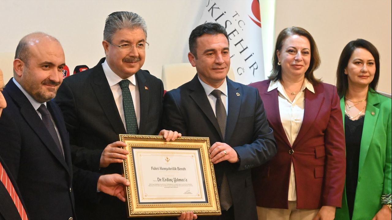 Program, Eskişehir Valiliği'nde gerçekleştirildi. Sivrihisar Belediye Başkanı Habil Dökmeci, Eskişehir Valisi Dr. Erdinç Yılmaz'a 'Sivrihisar Fahri Hemşehrilik Beratı' takdim etti. Törende, Vali Yılmaz'ın geçmişte görev yaptığı Sivrihisar'a olan katkıları ve ilçeyle kurduğu güçlü gönül bağına dikkat çekildi.