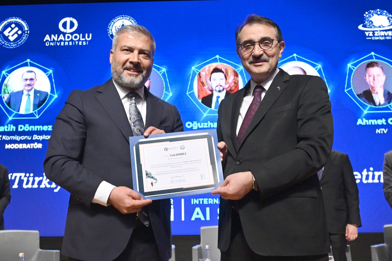 Zirve, katılımcıların salon girişindeki QR kodlar üzerinden ilettiği soruların panelistler tarafından yanıtlandığı interaktif bir soru-cevap bölümüyle sona erdi. “Türkiye'de Yapay Zekâ Ekosistem Yönetimi” başlıklı panel sonunda Anadolu Üniversitesi Rektörü Prof. Dr. Yusuf Adıgüzel tarafından Türkiye Cumhuriyeti önceki dönem Enerji ve Tabii Kaynaklar Bakanı, TBMM Yapay Zekâ Araştırma Komisyonu Başkanı ve Eskişehir Milletvekili Fatih Dönmez ve panelistlere teşekkür belgesi takdim edildi.
